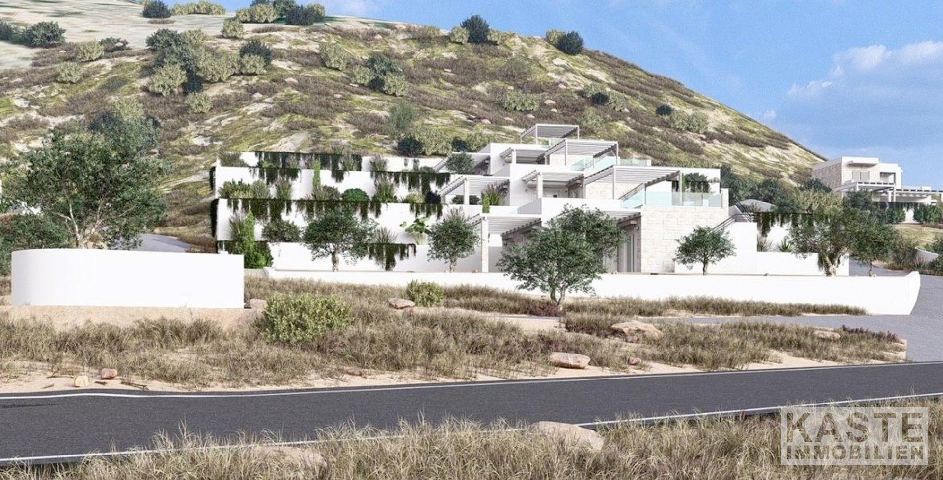 Makrigialos Hills liegt in der Region Pilalimata, wenige Fahrminuten oberhalb von Makrigialos. Die Lage ist ruhig, offen und geprägt von Weitblick Richtung Meer. Durch die leichte Höhenlage profitieren alle Einheiten von Meerblick, ohne abgeschieden zu sein.