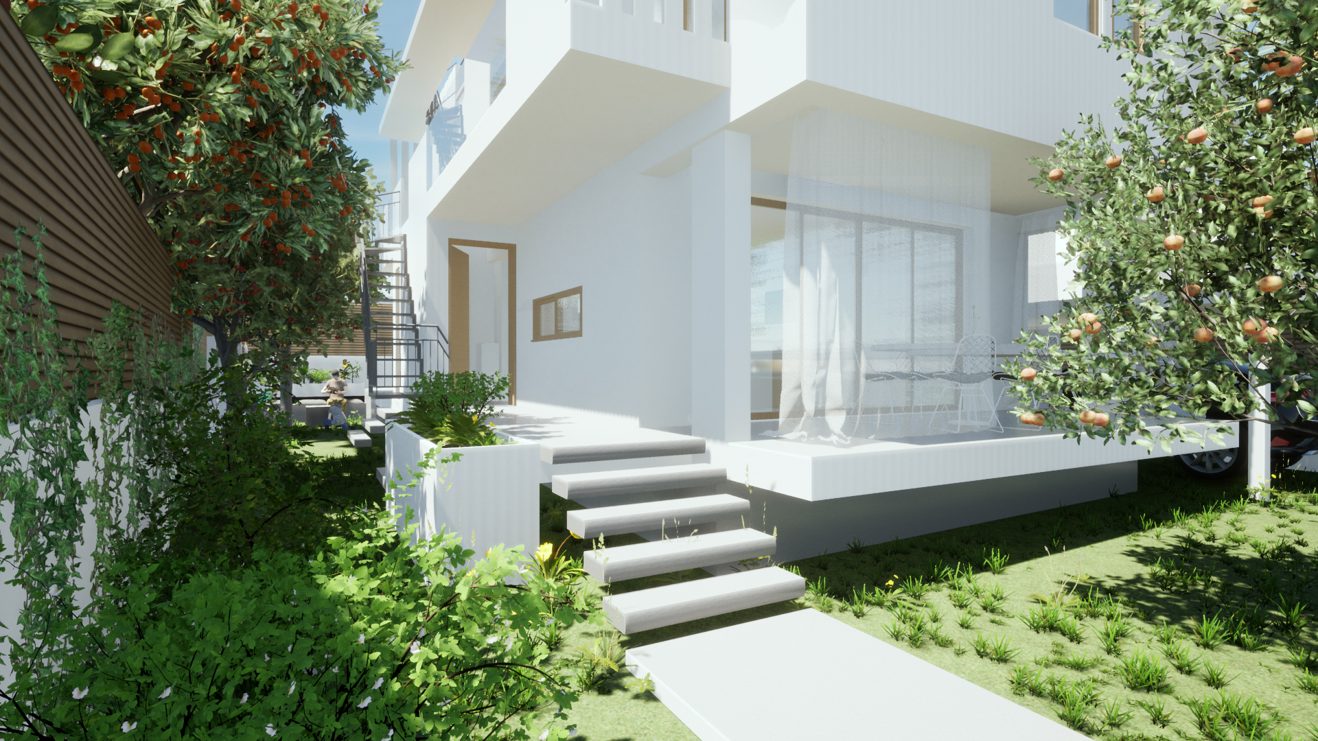 Barrierefrei und flexibel: Ein barrierefreier Zugang ist gewährleistet. Entweder als Bungalow-Variante oder mit zwei Ebenen möglich. In der zweigeschossigen Variante erwarten Sie in der oberen Ebene ein Master-Schlafzimmer mit integriertem Bad und zwei weitere Zimmer mit Balkonen und Meerblick. Das Obergeschoss ist über Lufträume mit dem unteren verbunden und kann auch unabhängig vom Erdgeschoss über eine Außentreppe erreicht werden. Eine Innentreppe sowie eine Außentreppe führen zur grünen Dachterrasse mit atemberaubendem Blick auf das Meer und die Berge.