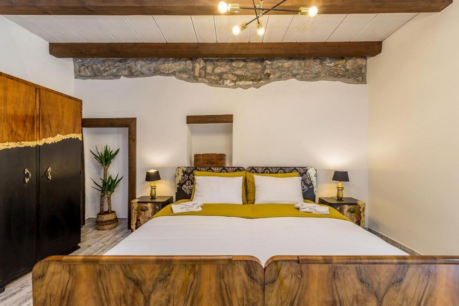 Die sorgfältige Dekoration legt besonderen Wert auf Details, wobei die Teile des ursprünglichen Steinhauses perfekt in das Design und die handgefertigten Möbel integriert sind. Dies verleiht dem Anwesen eine einzigartige kreative Atmosphäre, die ideal für Ruhe und Entspannung ist.