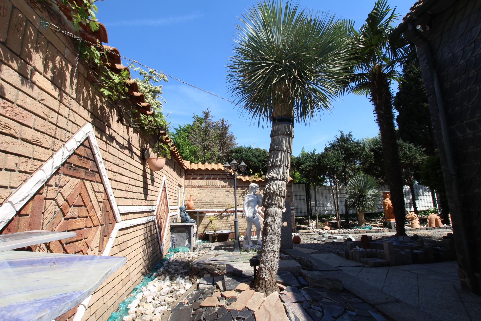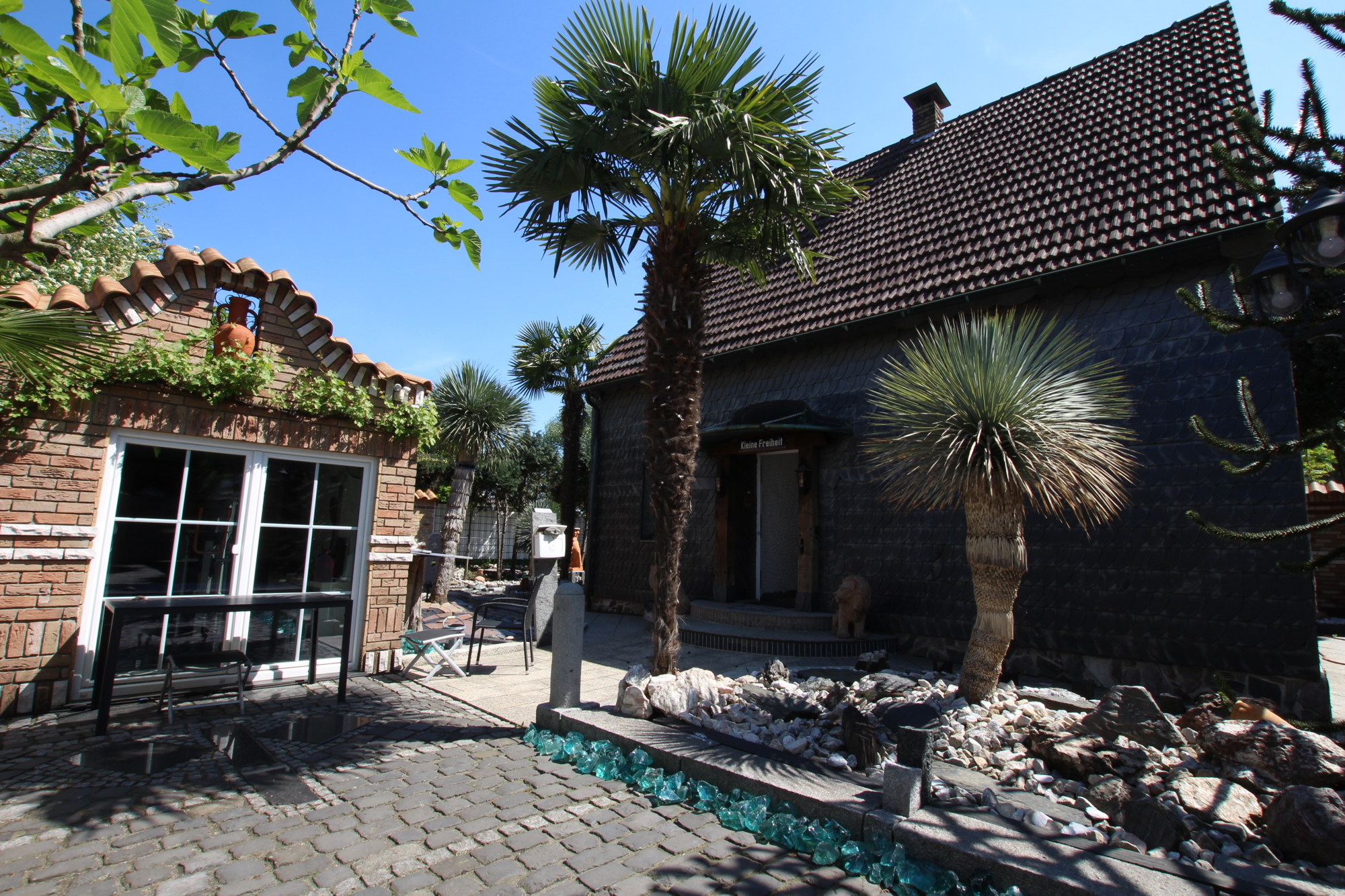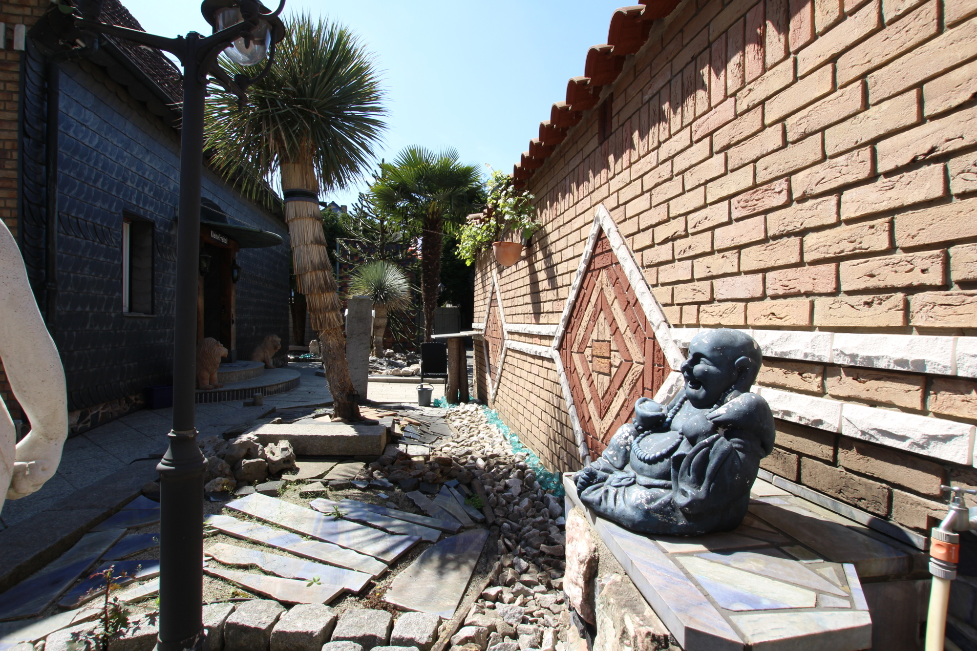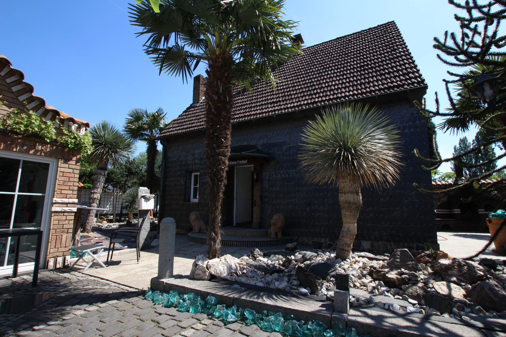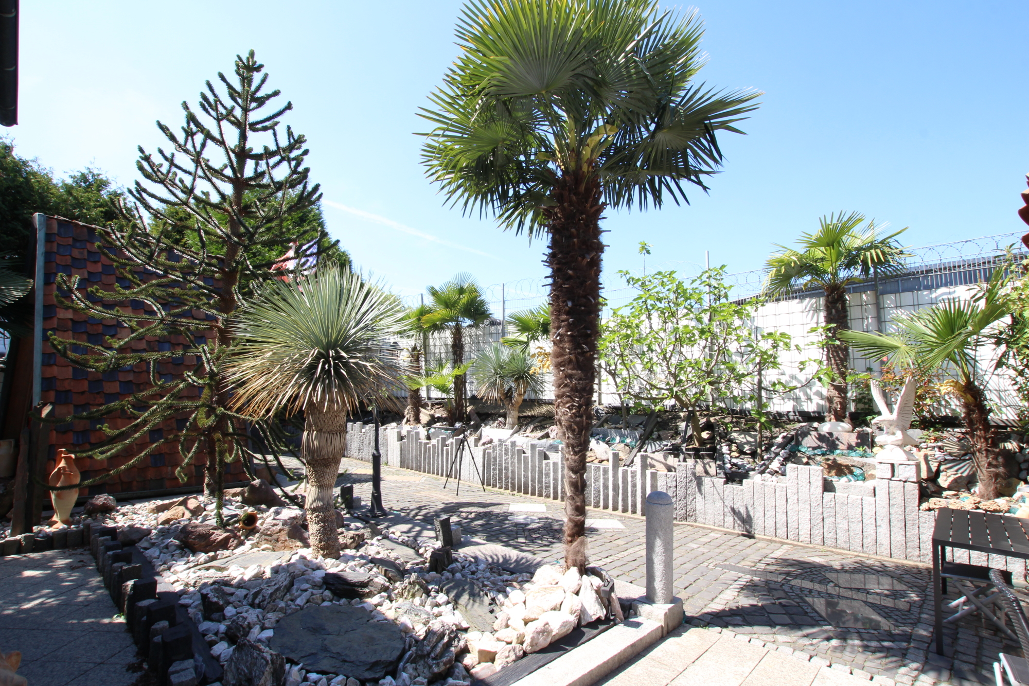 Bereits beim Betreten des Grundstücks mit ca. 536m² empfängt Sie ein einzigartig gestalteter Steingarten mit teilweise sechs Meter hohen Palmen, Feigenbäumen und Bananenbäumen, der an ferne Urlaubsorte erinnert. Der großzügige Außenbereich bietet mit Traubenranken und Olivenbäumen noch ein weiteres Highlight: ein separates Häuschen mit hochwertigem Granitboden ausgestattet, das als privater Fitness und Wellnessbereich dient. Hier finden sie eine Sauna samt Dusche, perfekt zum Entspannen nach einem langen Tag.