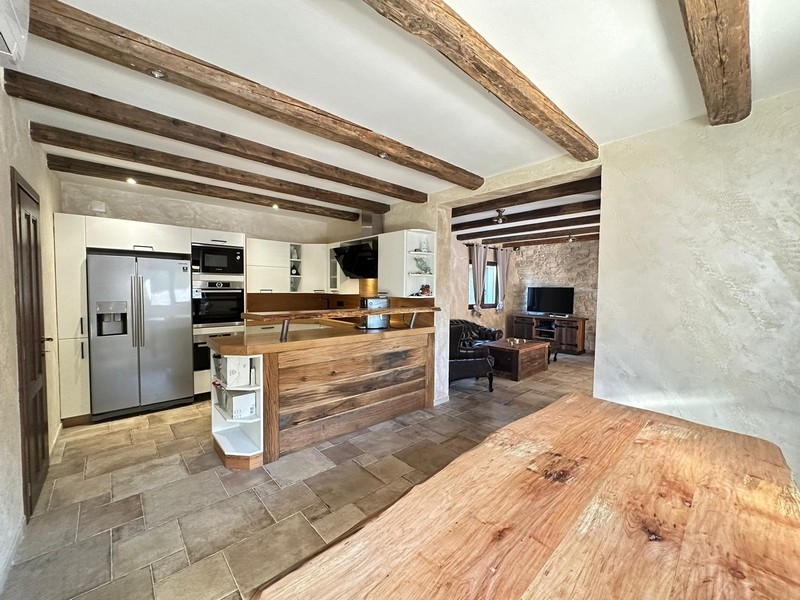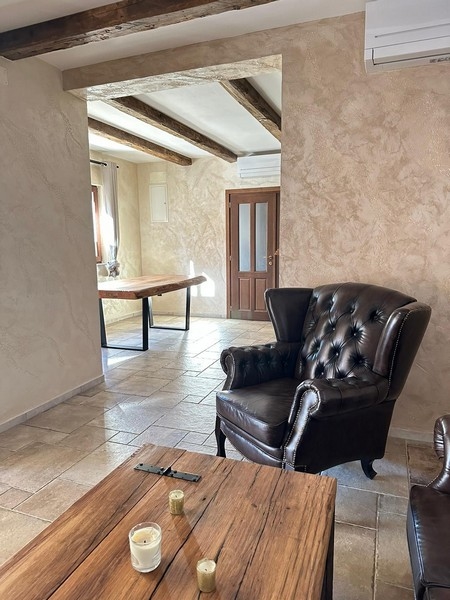 An kalten Tagen sorgt ein Kamin für Gemütlichkeit. Das Haus ist mit Fußbodenheizung, Klimaanlagen und einer Wärmepumpe ausgestattet.