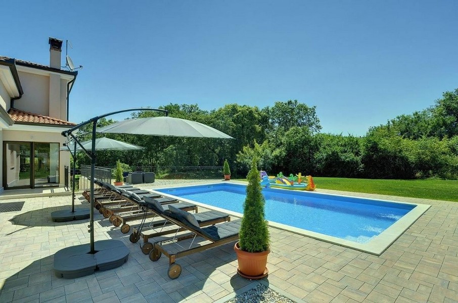 Wir präsentieren Ihnen eine luxuriöse Villa, die auf einem großzügigen Grundstück von 2.447 m2 in einer ruhigen Lage in der Nähe von Rovinj steht. Die Villa ist ein wahrhaftiges Paradies mit einer grünen Oase im Innenhof, die mit einem riesigen 54 m2 Swimmingpool, einer Liegewiese mit Pergola und einer überdachten Terrasse ausgestattet ist.