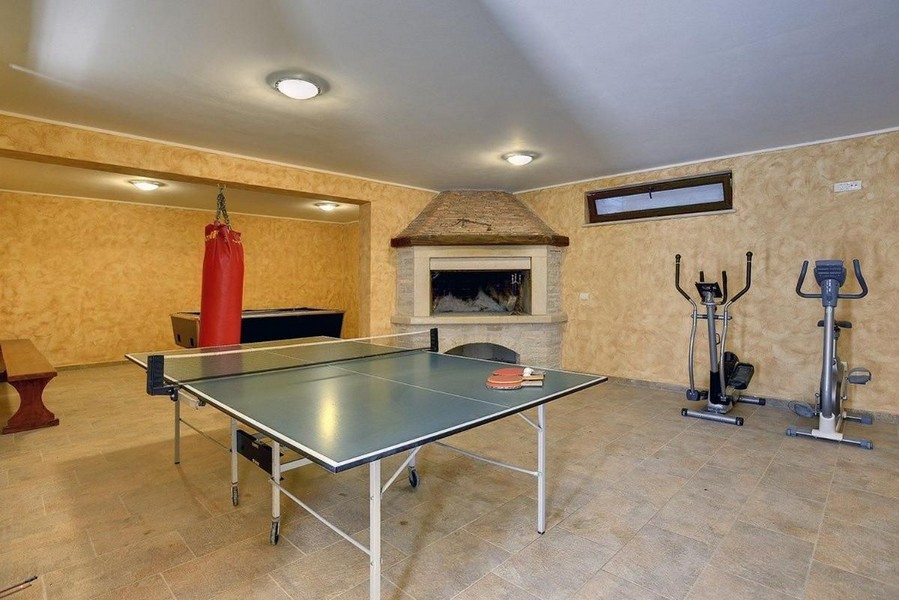 Das Untergeschoss bietet ein gemütliches Ambiente mit einem Raum mit Kamin, einer Entspannungszone mit Billard, einer Waschküche und einem Badezimmer. Eine externe, separate Garage für zwei Autos und ein Nebenraum von 70m2 sind ebenfalls vorhanden.