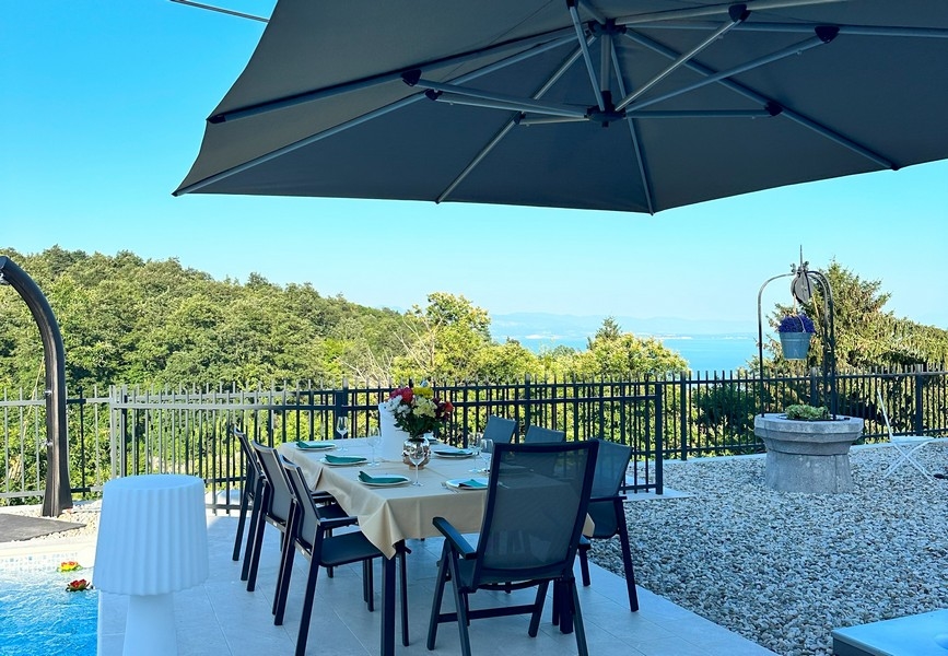 Bei diesem Objekt handelt es sich um eine mediterrane Villa mit Swimmingpool und Meerblick in attraktiver Lage oberhalb von Icici, Region Opatija in der nördlichen Kvarner Bucht.