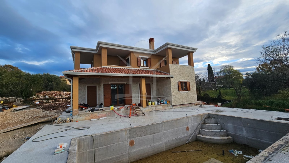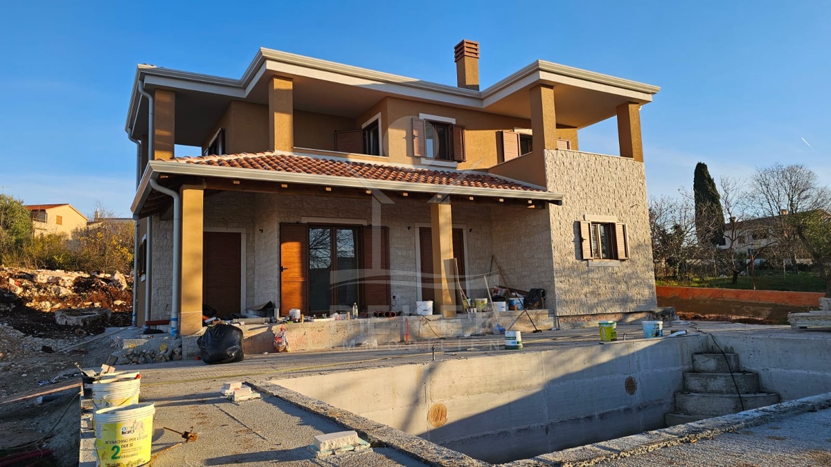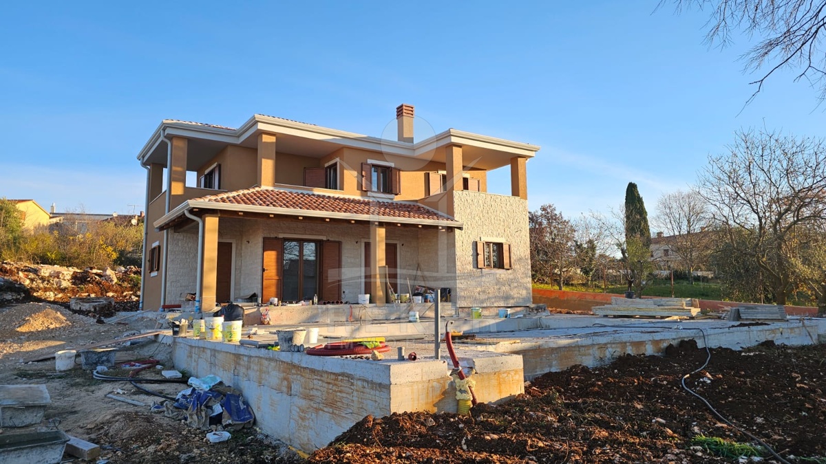 Im ruhigen Dorf, nur rund 10 Minuten von Poreč entfernt, steht diese neu gebaute Villa mit Meerblick. Das Wohnviertel ist gepflegt und liegt angenehm zurückgezogen. Das Zentrum des Ortes erreichen Sie zu Fuß in wenigen Minuten. Die Nachbarschaft ist überschaubar und ruhig. Ein eigener Stellplatz ist direkt vor dem Haus vorhanden. Das 979 m² große Grundstück bietet viel Platz im Freien. Die südlich ausgerichtete Terrasse grenzt direkt an den Pool, der perfekte Ort für Frühstück in der Morgensonne oder einen langen Grillabend.