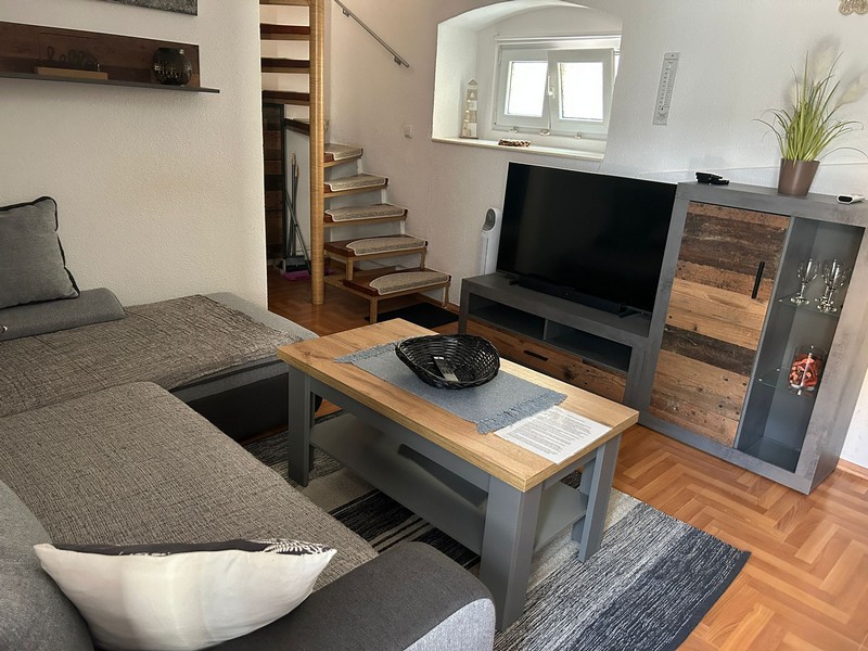 Das Haus wird vollständig möbliert zum Verkauf angeboten. Ein Stellplatz befindet sich an der Straße, etwa 60 Meter entfernt.