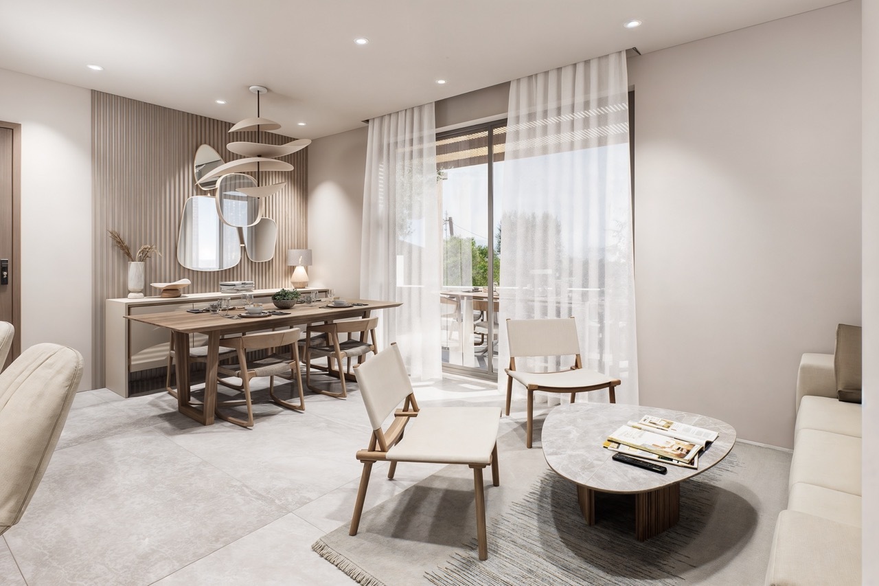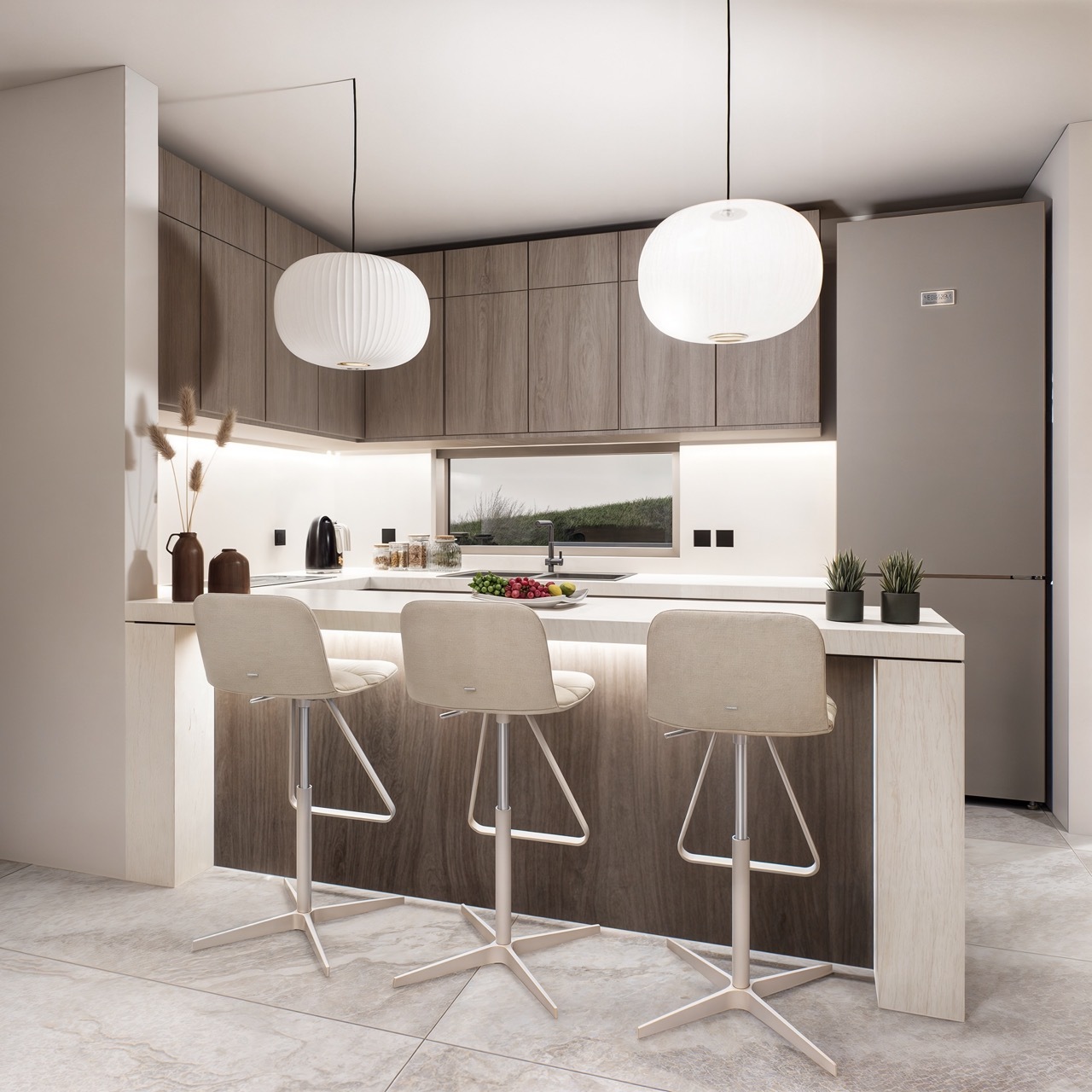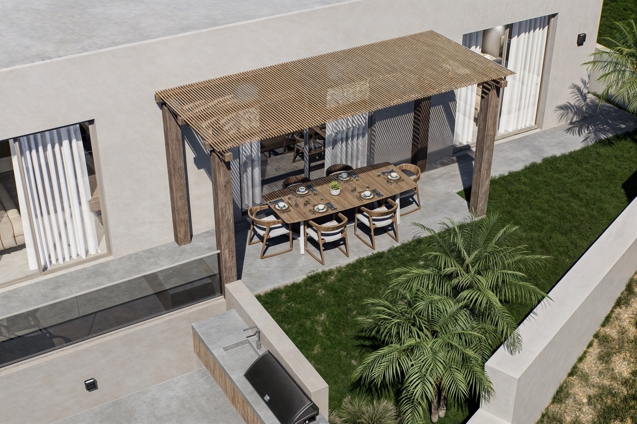 Die Villa wurde mit besonderem Augenmerk auf Komfort und Privatsphäre entworfen: - Zwei großzügige Schlafzimmer, jeweils mit eigenem modernen Badezimmer, bieten persönlichen Rückzugsraum. - Der offene Wohnbereich mit fließendem Übergang zur stilvollen Scavolini-Küche schafft eine helle und einladende Atmosphäre – perfekt für gesellige Abende mit Familie und Freunden.