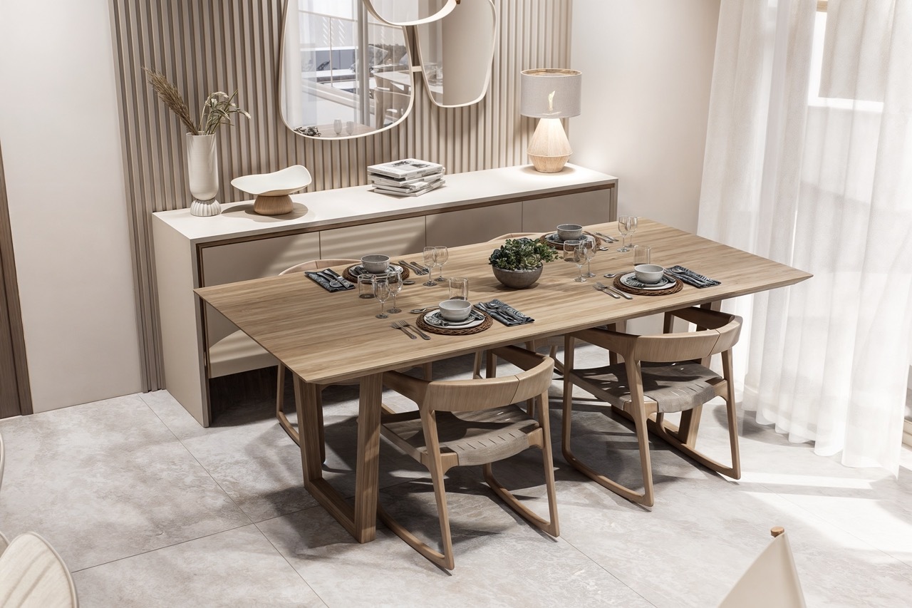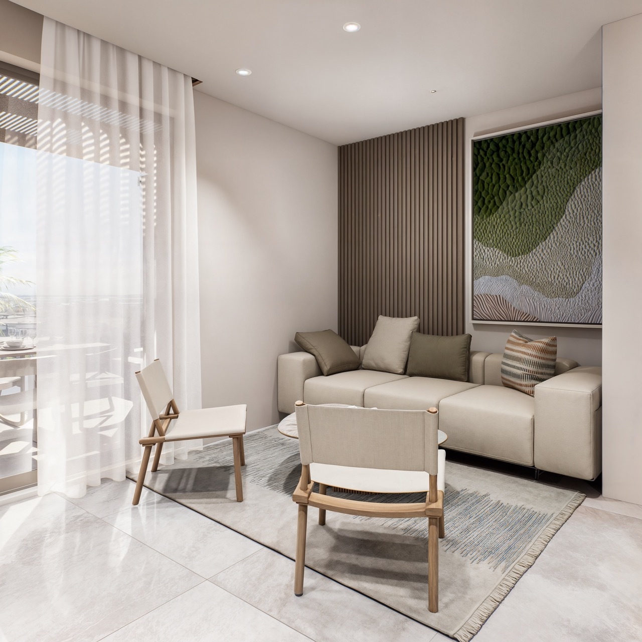 Innenraum & Raumaufteilung: ✅ Bungalow-Stil – barrierefreies Wohnen auf einer Ebene ✅ 2 Schlafzimmer, jeweils mit eigenem Badezimmer ✅ Offener Wohn- & Essbereich mit Meerblick ✅ Voll ausgestattete Küche von Scavolini ✅ Bodentiefe Fenster für lichtdurchflutete Räume