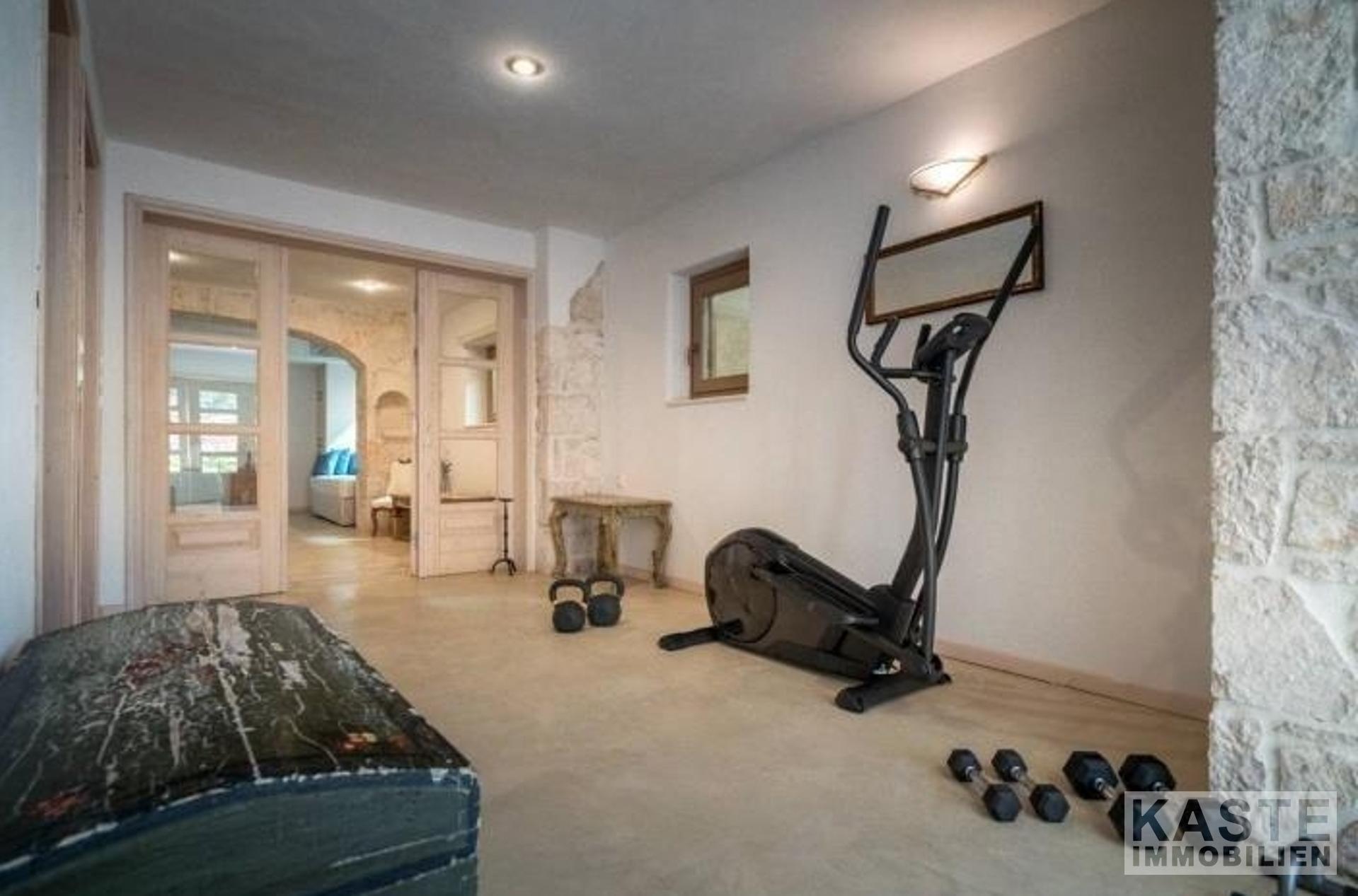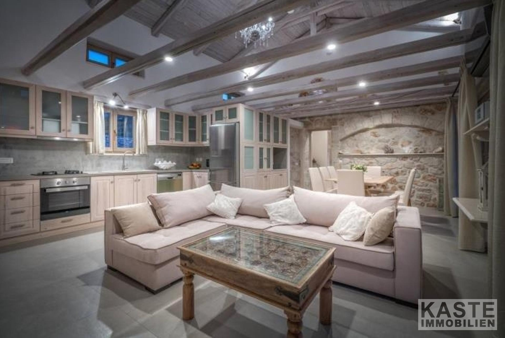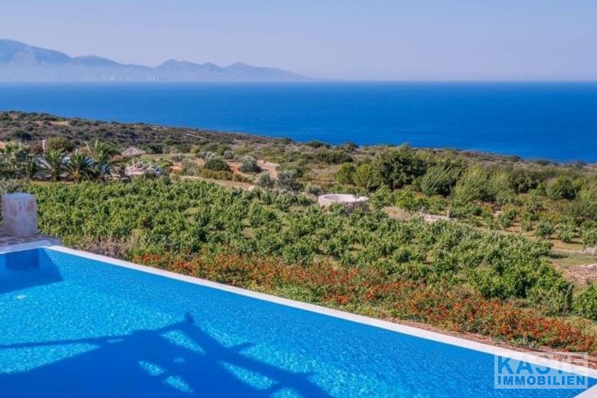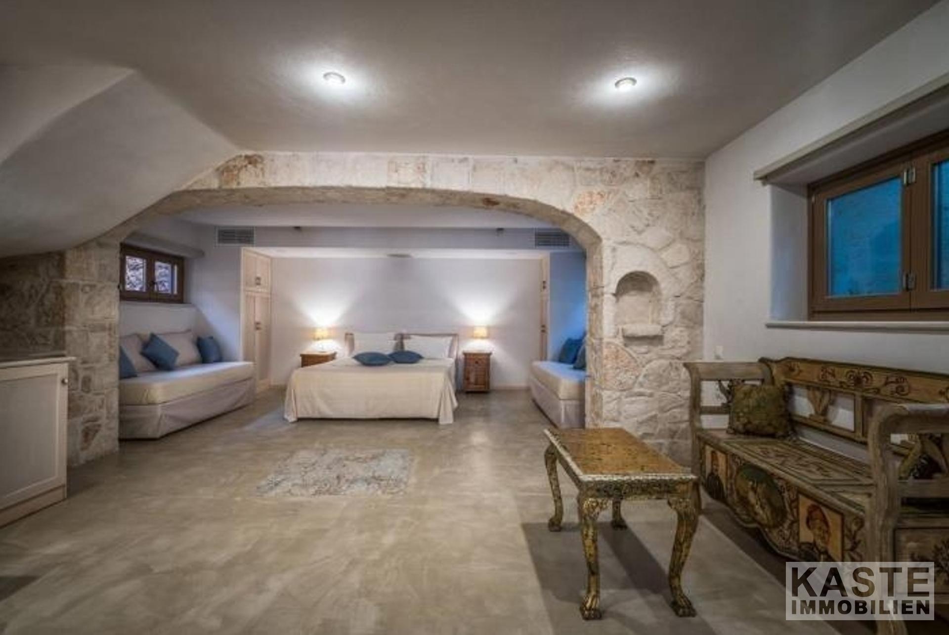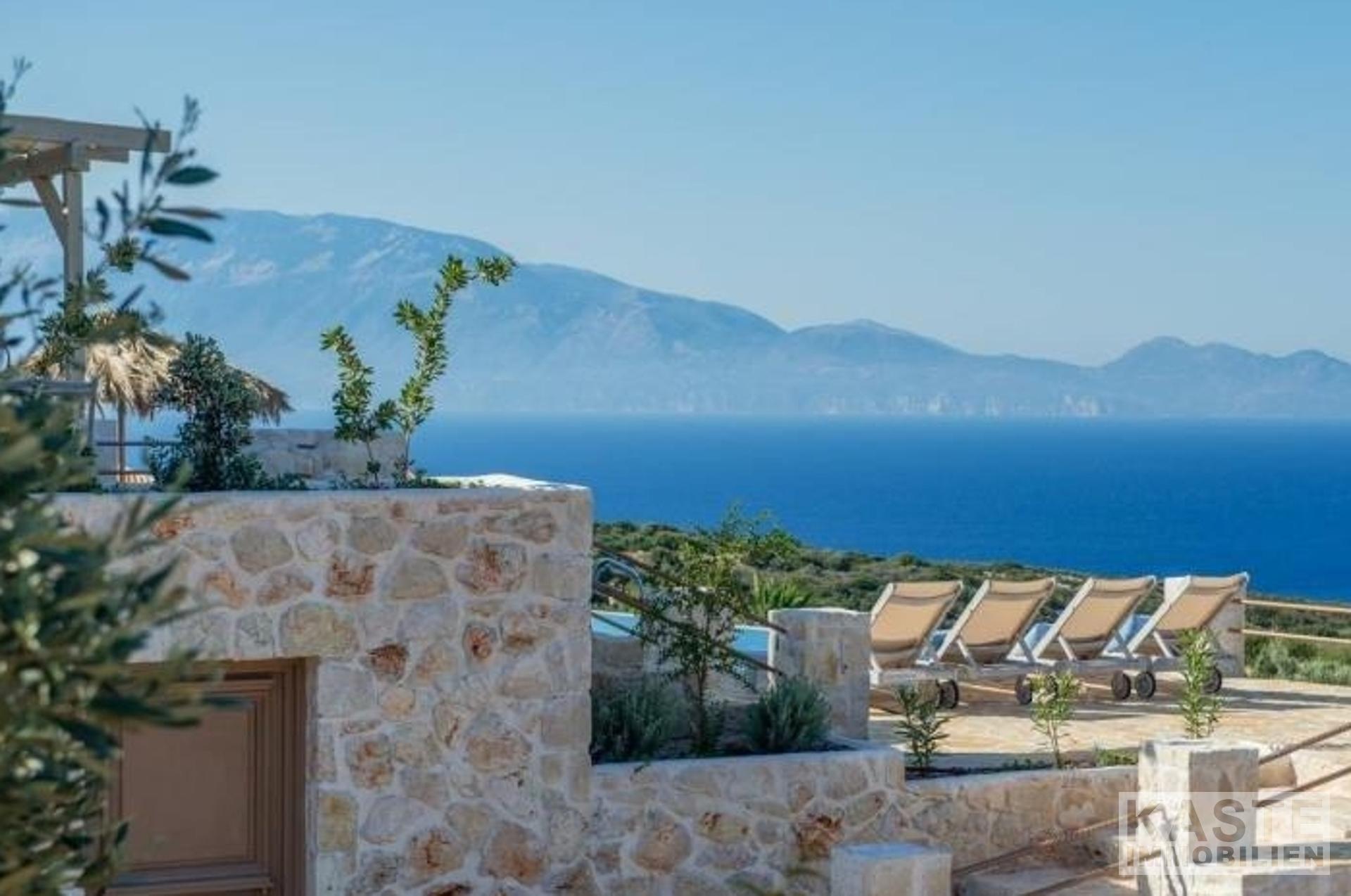 Diese luxuriöse, voll klimatisierte Villa mit 4 Schlafzimmern ist 200 qm groß und kann bis zu 10 Gäste beherbergen. Sie verfügt über einen eigenen Pool mit Hydromassage, ein exklusives Hammam und einen direkten Zugang zum Meer. Im Erdgeschoss befindet sich eine große, voll ausgestattete offene Küche mit Wohn-/Essbereich. Zwei weitreichende, quadratische, getäfelte Türen lassen das tiefe Blau des Ionischen Meeres und die Aussicht auf Kefalonia im Hintergrund erstrahlen. Eine schöne Holzbalkendecke bewahrt den authentischen Stil und kombiniert ihn mit einem modernen Touch im Inneren. Auf dieser Ebene befinden sich auch zwei große Doppel-/Zweibettzimmer, die beide über ein eigenes Duschbad verfügen. Von beiden Schlafzimmern aus gelangen Sie direkt in den Hydro-Massage-Poolbereich, der mit Liegen und Sonnenschirmen ausgestattet ist. Unter der überdachten Veranda befindet sich ein eleganter Essbereich, der an warmen Sommerabenden zum Essen im Freien einlädt. Wenn Sie die Innentreppe hinuntergehen, gelangen Sie in den Fitnessbereich. Angrenzend an den Fitnessraum befindet sich das Hammam/Dampfbad mit Dusche und Toilette. Auf der unteren Ebene befinden sich zwei weitere Schlafzimmer, ein sehr großes Familienzimmer mit Sitzgelegenheit und Ankleidebereich und ein weiteres Schlafzimmer mit Doppelbett. Große Massivholztüren führen auf die untere Terrasse und grenzen an den Weinkeller. Eine Treppe führt hinauf zum Poolbereich, wo Sie den Tag mit den Klängen der Natur ausklingen lassen können. Die Villa steht auf einem ca. 6500 qm großen Grundstück, von dem 5000 qm ein herrlicher Weinberg sind, der nicht nur beeindruckend aussieht, sondern Sie haben auch die Möglichkeit, Ihren eigenen Wein zu produzieren. Die nördliche Region von Zakynthos ist bekannt für ihre natürliche Schönheit und ist der ideale Ort für diese hochwertige Villa.