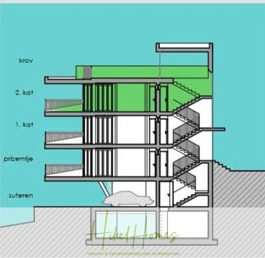 AUSSTATTUNG: - 2 Gebäudeteile mit jeweils 3 Wohnungen - Penthouse - absolut modernes und attraktives Designkonzept - großzügiger Grundriss über 2 Stockwerke - große Sonnenterrase und Dachterrasse mit Südausrichtung - große zu öffnende Fensterfronten - offener Wohn- und Essbereich - 2 Schlafzimmer - Balkon mit Meerblick und Südausrichtung - Bad - Gäste WC - kleiner Abstellraum im Untergeschoss - Außenstellplatz kann gegen Aufpreis erworben werden - Fußbodenheizung in den Bädern - moderne Klimaanlage - SAT TV-Anschlüsse in allen Zimmern