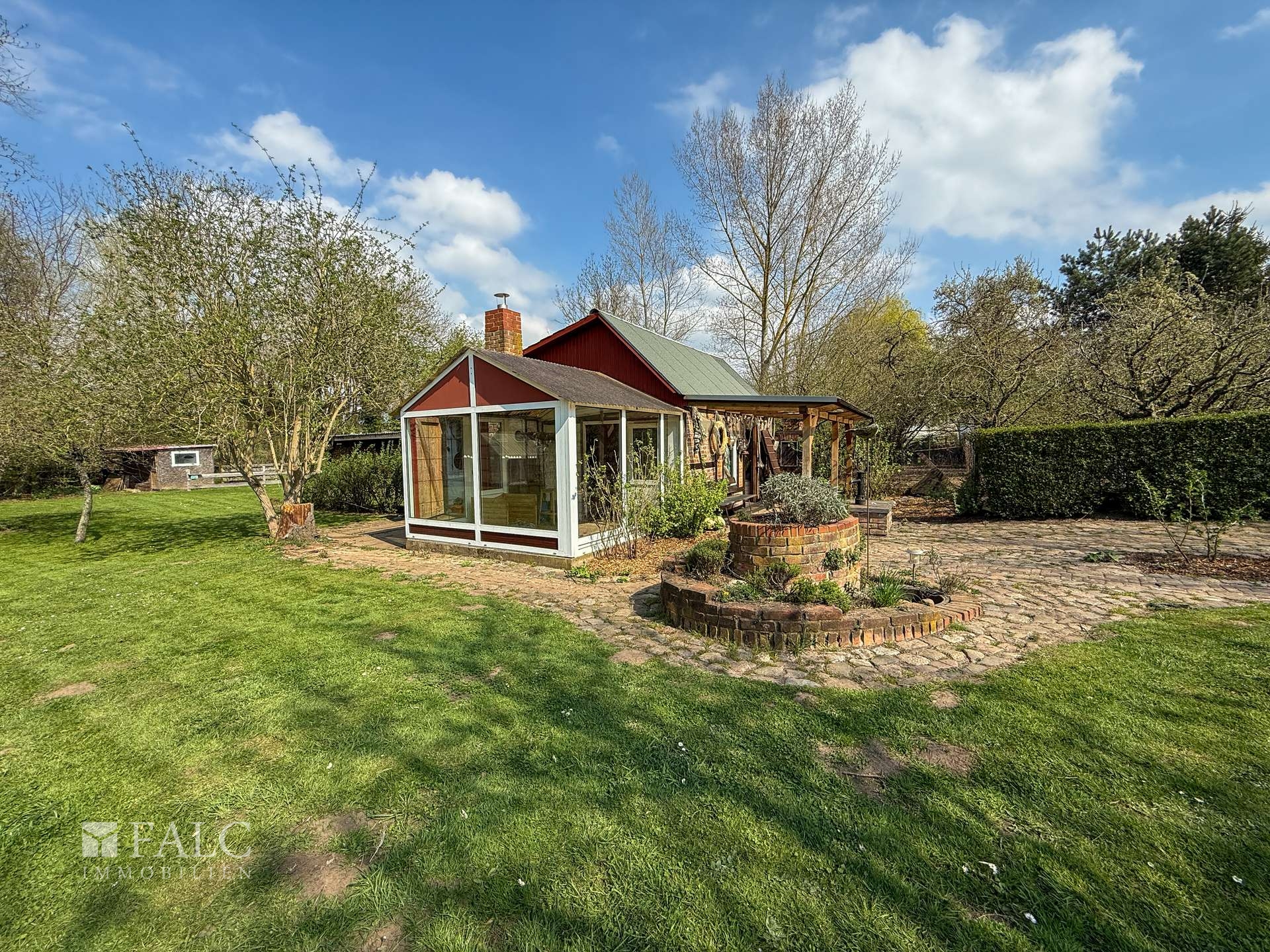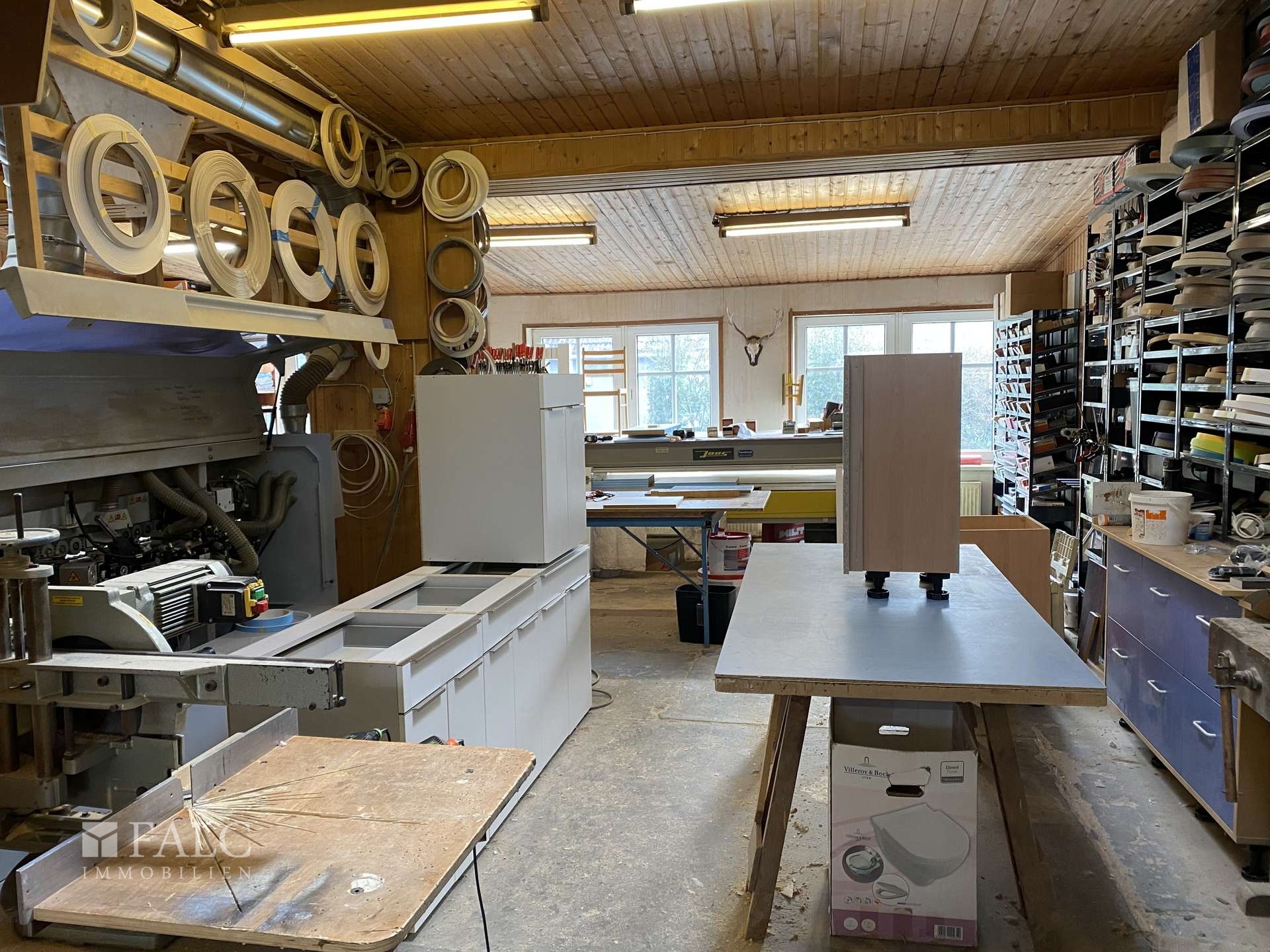 Willkommen in Ihrem neuen Zuhause – einem Ort, der Lebensqualität, Ruhe und vielfältige Nutzungsmöglichkeiten perfekt vereint. Es bietet nicht nur ein modernes Wohnambiente, sondern auch ein beeindruckendes Grundstück, das Natur und Freiheit auf ganz besondere Weise erlebbar macht. Schon beim Betreten des Hauses spüren Sie die besondere Atmosphäre: Warme Holzböden, sichtbare Balken und ein durchdachter Grundriss schaffen ein behagliches Zuhause mit Stil und Funktionalität. Die großzügige Wohnküche mit Kochinsel und Kamin ist das Herzstück des Hauses – hier trifft Gemütlichkeit auf modernes Design. Direkt angrenzend befinden sich ein helles Schlafzimmer und ein elegantes Badezimmer mit Dusche, Badewanne, WC und Fenster. Zusätzlich stehen Ihnen im Erdgeschoss ein separates Arbeitszimmer zur Verfügung. Im Obergeschoss befinden sich zwei liebevoll gestaltete Kinderzimmer. Eines davon bietet sogar Zugang zum ausgebauten Spitzboden – ideal als Spielbereich oder gemütlicher Rückzugsort. Ein großzügiges Wohnzimmer mit Kamin und lichtdurchfluteten Fenstern schafft eine behagliche Atmosphäre. Ein zusätzliches Badezimmer mit Dusche rundet das Raumangebot ab – perfekt für ein harmonisches Familienleben mit ausreichend Freiraum für alle. Eine separate Ferienwohnung auf dem Grundstück ist ein wahres Schmuckstück und eröffnet vielseitige Möglichkeiten. Hochwertig ausgestattet mit einer modernen Einbauküche, einem stilvollen, tageslichthellen Badezimmer sowie einem behaglichen Wohn- und Schlafbereich, bietet sie nicht nur höchsten Komfort, sondern auch eine charmante Atmosphäre zum Wohlfühlen. Ob für liebe Gäste, heranwachsende Kinder mit Wunsch nach Privatsphäre oder als lukrative Einnahmequelle durch Vermietung. Die angrenzende Werkstatt ca. 228 m² wird derzeit als Tischlerei genutzt und ist aktuell vermietet. Sie bietet zugleich eine attraktive Einnahmequelle und unterstreicht das vielseitige Nutzungspotenzial dieser besonderen Immobilie. Das weitläufige Grundstück ist ein echtes Juwel. Ein liebevoll angelegter Garten mit Obstbäumen und -sträuchern, einem Brunnen mit Schwengelpumpe sowie einen privaten Teich mit Steg, lädt zum Verweilen und Genießen ein. Die große Auffahrt mit drei Carports rundet das Gesamtbild perfekt ab. Weitere Informationen finden Sie in einem separaten Dokument. Diese Immobilie ist mehr als ein Haus – sie ist ein Lebenskonzept. Ideal für Familien, Paare mit Platzbedarf, Kreative und Naturliebhaber. Ob als ruhiger Rückzugsort, als Kombination aus Wohnen und Arbeiten oder als Investitionsobjekt mit Vermietungspotenzial – hier verbinden sich Wohnkomfort, Naturverbundenheit und praktische Möglichkeiten auf höchstem Niveau.