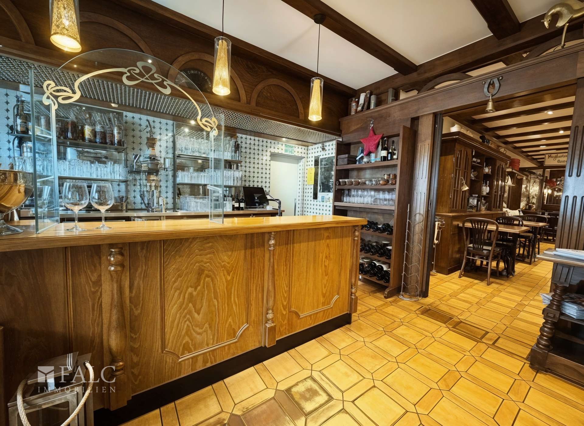 Auf einem ca. 304 m² großen Grundstück eröffnet sich ein Gesamtensemble von rund 361 m², das den Charakter, die Wärme und die Atmosphäre eines gewachsenen Gastronomiebetriebs in Perfektion widerspiegelt. Bereits beim Betreten des Restaurants empfängt Sie ein einladendes Ambiente aus warmen Holztönen, stilvollen Details und einem Raumgefühl, das Tradition und Gemütlichkeit miteinander vereint.
