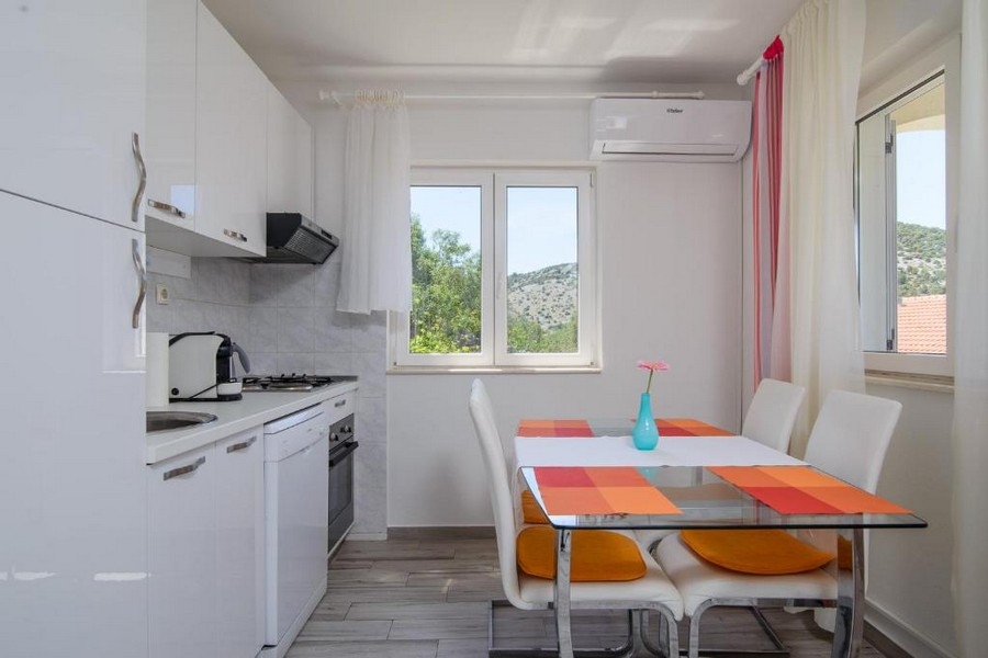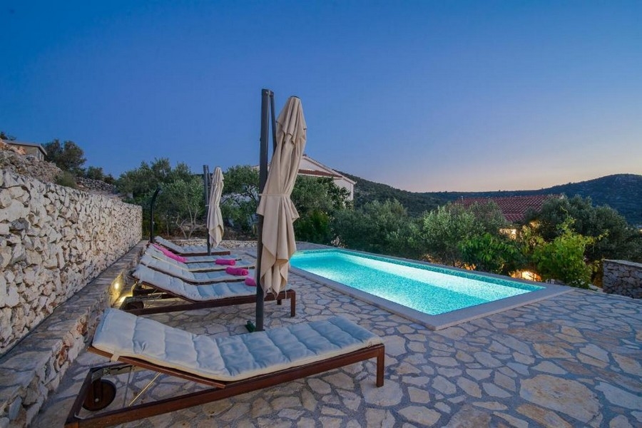 Dieses Haus befindet sich in Marina, Region Vinisce bei Split und zeichnet sich durch einen beeindruckenden Panoramablick, seine unmittelbare Nähe zum Meer, eine ruhige Nachbarschaft sowie einen Swimmingpool mit Liegewiese aus.