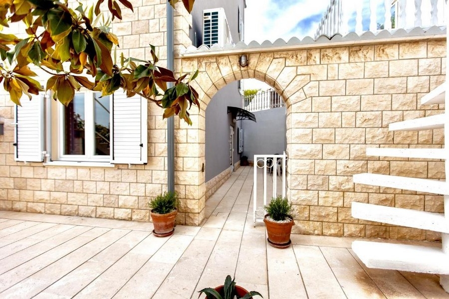 Dieses Mehrfamilienhaus wurde 2019 komplett renoviert und befindet sich auf einem Grundstück von 1350 m² direkt am Meer, Insel Ciovo (Brückenverbindung).