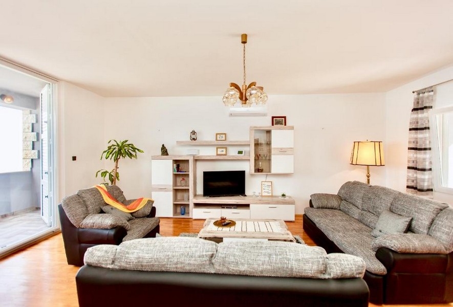 Das Haus verfügt über drei Stockwerke und vier Wohneinheiten, die alle komplett möbliert und voll ausgestattet sind. Eine zentrale Elektroheizung sorgt für Wärme in allen Räumen, und jedes Stockwerk bietet einen Balkon mit Meerblick. Im großzügigen Garten befinden sich ein großer Pool und ausreichend Platz zum Sonnenbaden.