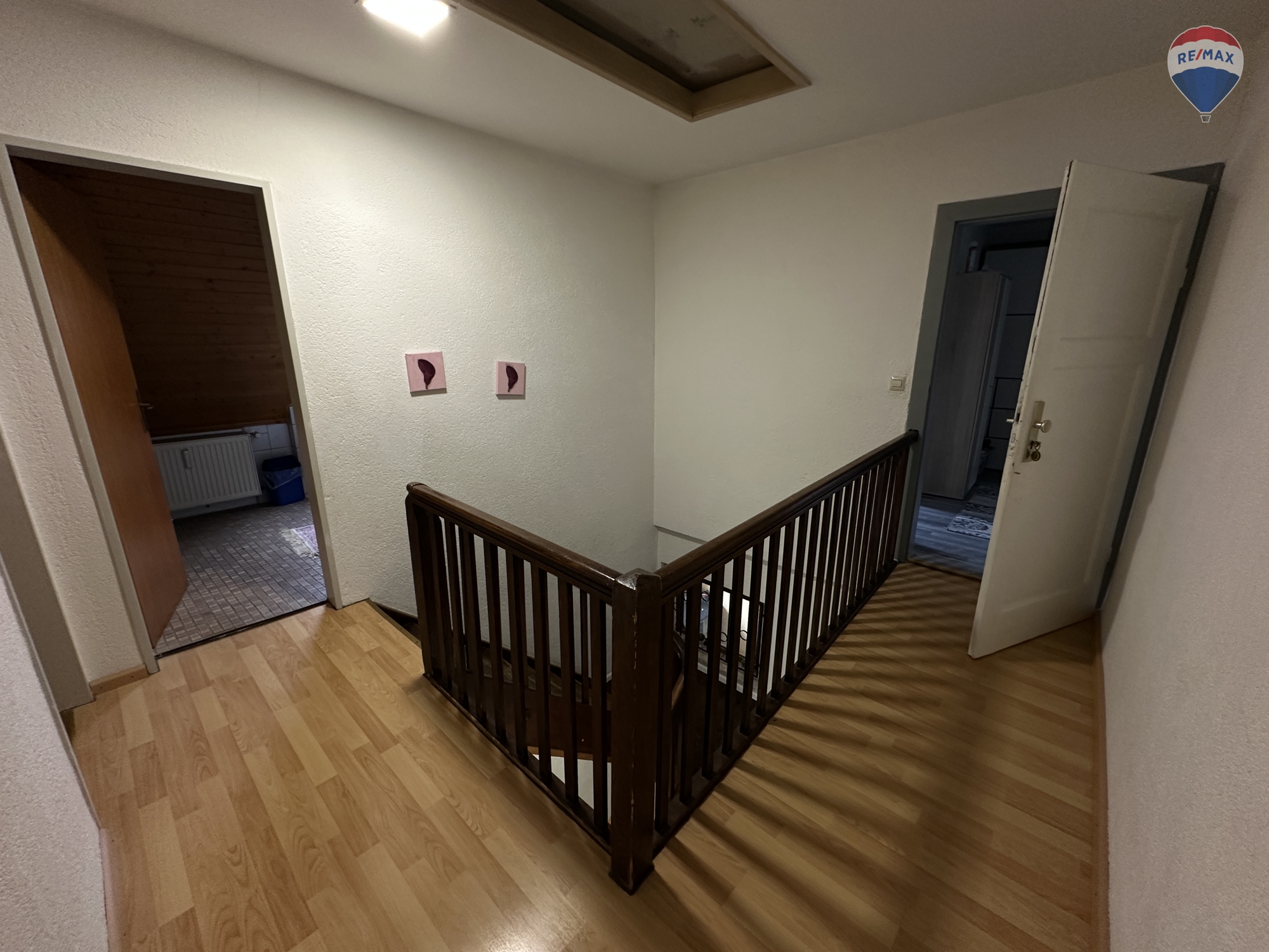 Durch das Treppenhaus gelangen Sie in den Obergeschoss, wo Sie eine 5-Zimmer-Wohnung erwartet.
