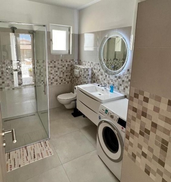 Sowohl im Erdgeschoss als auch im ersten Stock befindet sich eine Wohnung mit zwei Schlafzimmern, zwei Badezimmern, einer Küche mit Esszimmer und Wohnzimmer sowie einem Abstellraum. Die Appartements werden mit der kompletten Ausstattung verkauft.