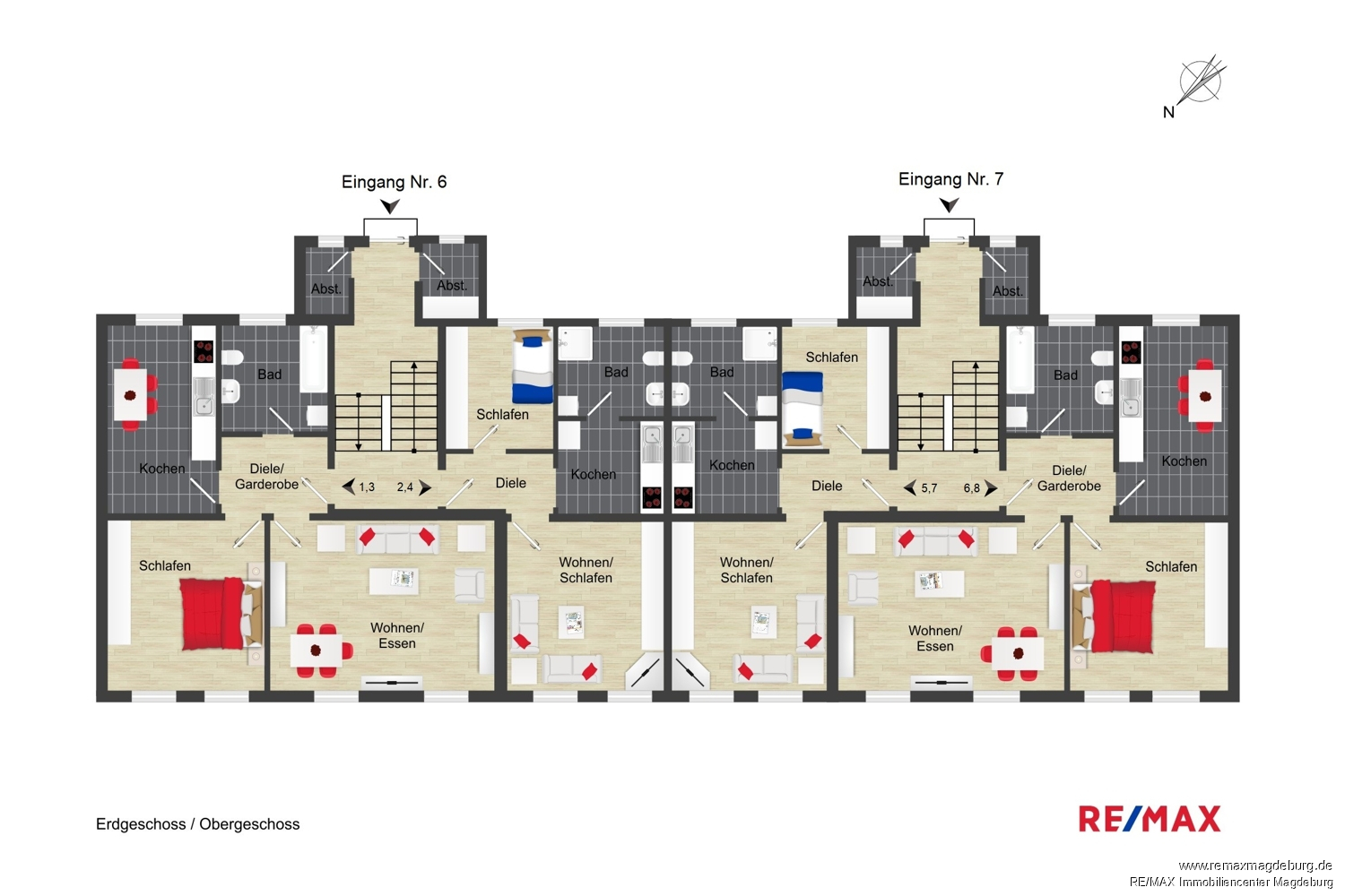 - Wohneinheiten: 8 (je Haus 4 WE),