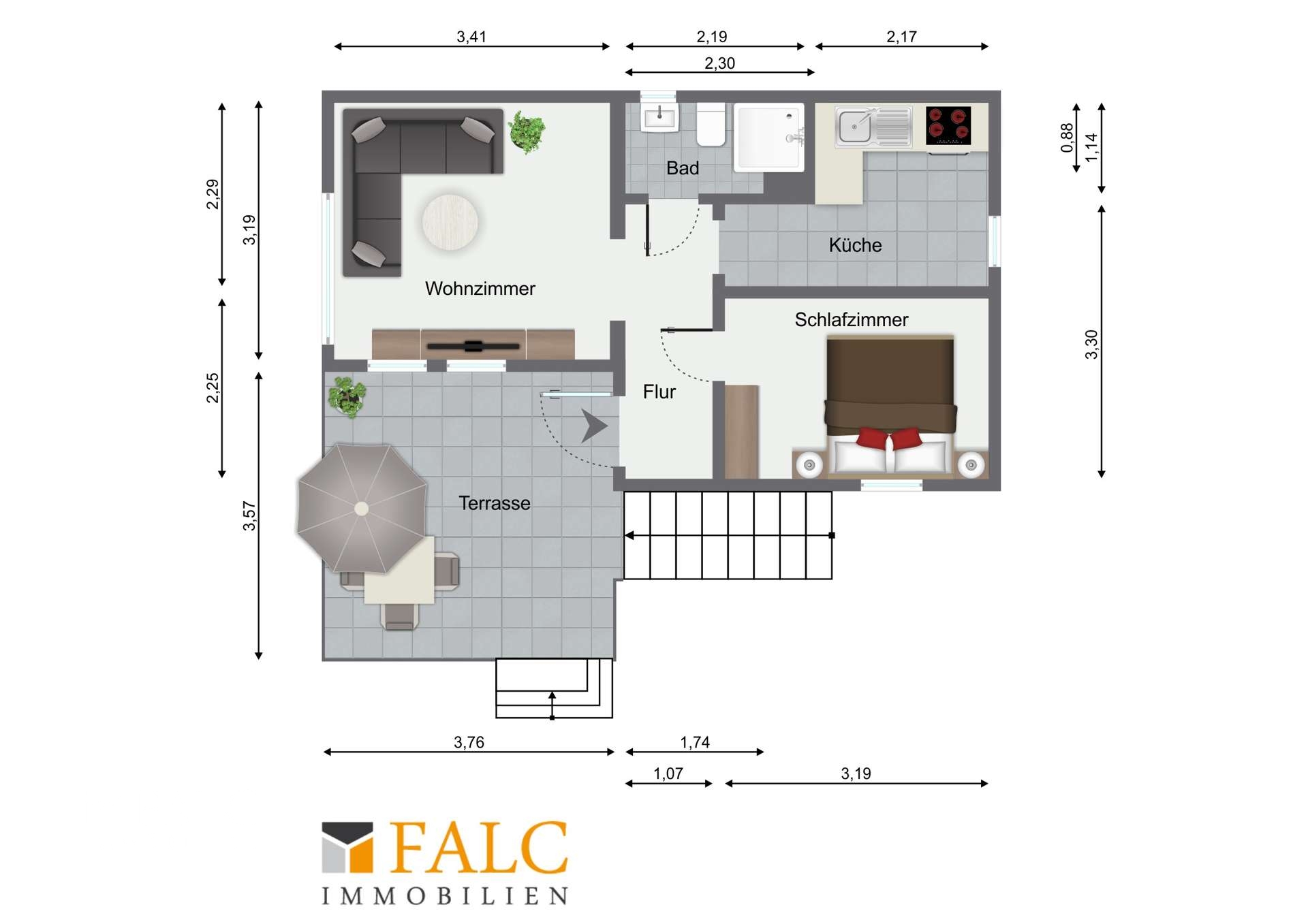 Eine Besichtigung sagt mehr als jede Beschreibung, bei Interesse zögern Sie nicht und vereinbaren Sie einen unverbindlichen Termin. Wir bieten nicht nur eine kostenlose Hotline, sondern auch einen Service am Wochenende an. Bei Interesse geben Sie bitte immer Ihre vollständigen Kontaktdaten an. Die Objektbeschreibung beruht ganz oder zum Teil auf Angaben des Eigentümers. Für die Richtigkeit oder Vollständigkeit übernehmen wir keine Gewähr. Sie haben auf Anhieb nichts gefunden oder suchen Sie etwas ganz bestimmtes? Teilen Sie uns einfach mit was Sie suchen und wonach wir für Sie die Augen offenhalten dürfen. Profitieren Sie von den Vorteilen einer professionellen Maklersuche. Der Suchauftrag ist unverbindlich. Auf unserer Homepage www.falcimmo.de unter der Rubrik Immobiliensuche halten wir für Sie zum einen den Onlinesuchauftrag bereit, haben aber auch viele andere nützliche Informationen für Kaufinteressenten und Eigentümer.