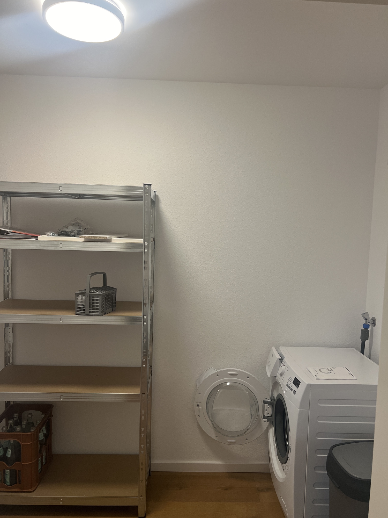***HIGHLIGHT NR. 1 *** Voll Möbliert mit 1 EBK, 1 Esstisch, 4 Esstischstühle, 1 Couch, 1 Couchtisch, 1 Bett, 1 großer Kleiderschrank, 1 Waschmaschine, 2 große Haushaltsregale, 1 großer TV im Wohnzimmer, Lampen, Gardinen, Jalousien, Dekorative Bilder, Schuhschrank, kleines Ablageregal im Flur