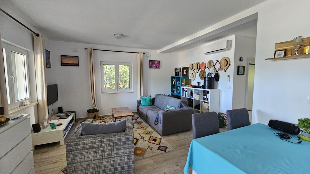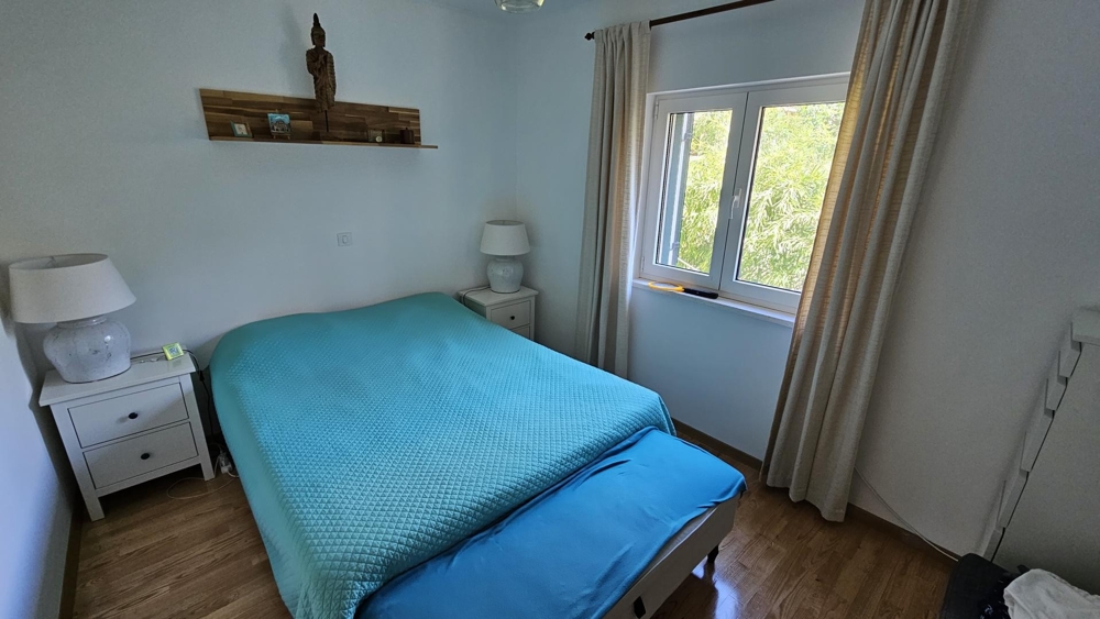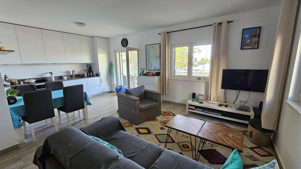 Die Wohnfläche von rund 80 m² umfasst zwei großzügige Schlafzimmer, ein Badezimmer, einen Wohn- und Essbereich mit integrierter Küche sowie eine überdachte Terrasse mit ansprechendem Blick auf das Meer.