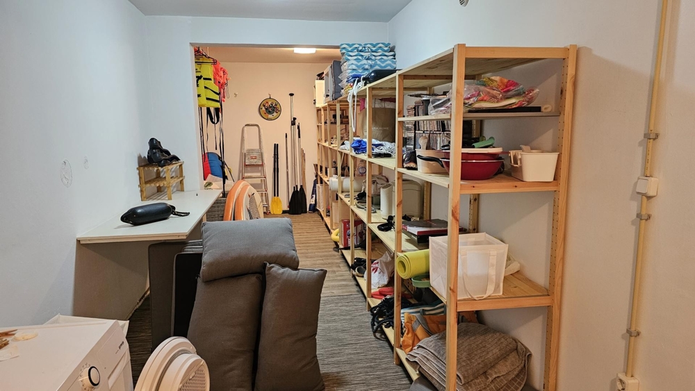 Zum Angebot gehören ein gesicherter Stellplatz, ein Kellerraum mit etwa 23 m² sowie ein ca. 12 m² großer Außenbereich, der sich auch als Rampe für einen barrierefreien Zugang eignet.
