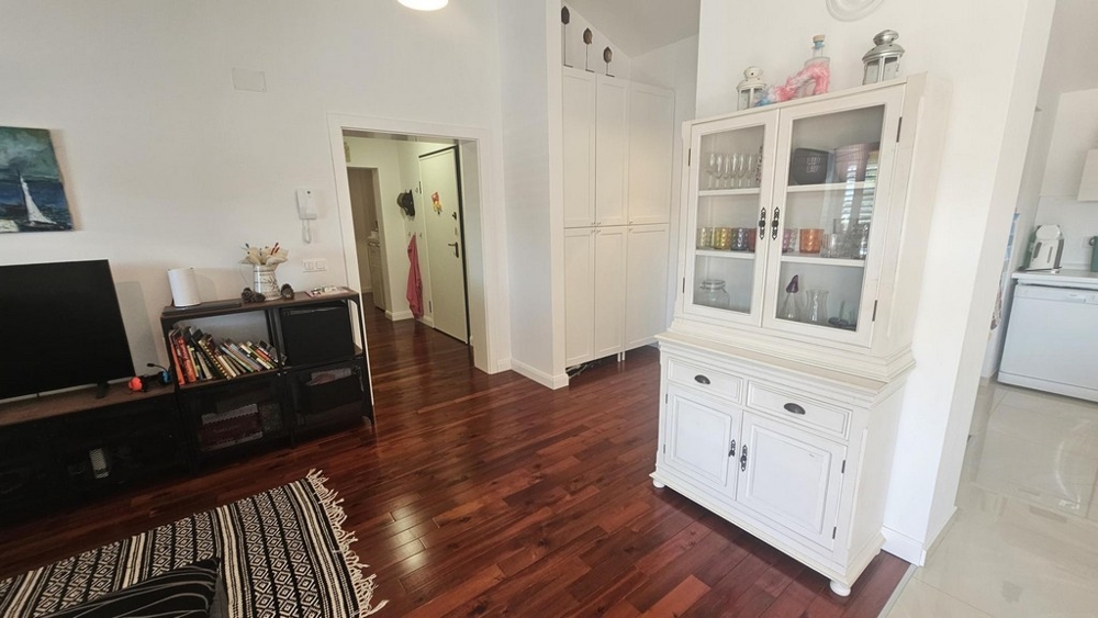 Die Immobilie befindet sich im zweiten Stockwerk und erstreckt sich über etwa 90 m² Wohnfläche. Sie bietet drei Schlafzimmer, ein Badezimmer, ein Gäste-WC, einen Wohnbereich mit Küche, Abstellraum und Essbereich sowie eine Terrasse mit Teilmeerblick.