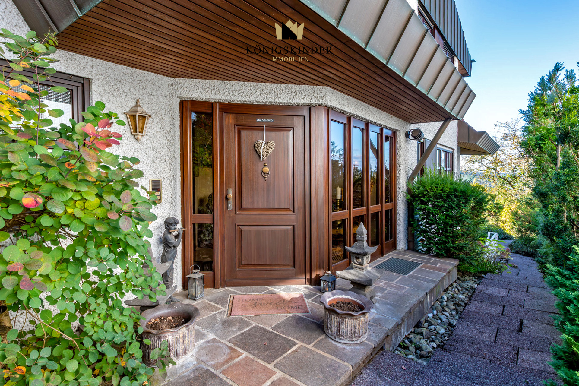 Der ehemalige Bauherr hat es aus genau diesen Gründen entsprechend gestaltet: von der Anliegerstraße sehen Sie nur das Dach und die Doppelgarage am Zugang - diskret und unauffallend in den Hang geduckt.