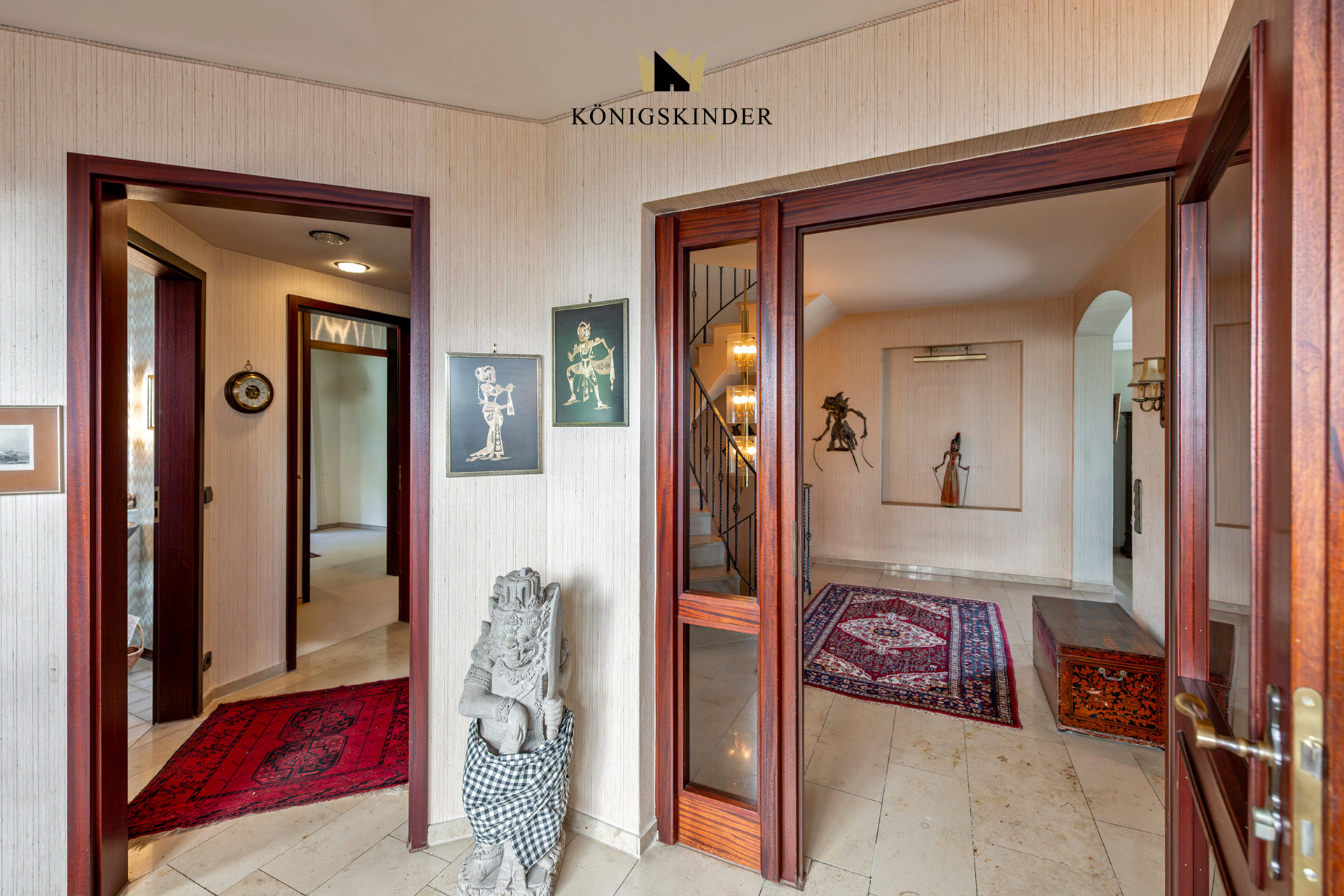 Sie suchen ein Anwesen, das nach außen eher unauffällig ist, innen jedoch repräsentativ gestaltet und großzügige Möglichkeiten bietet für eine mehrköpfige Familie, Freiraum für Ihre Hobbies und gelegentliche Gäste? Ein Haus, in dem Sie sich sicher und wohl fühlen?