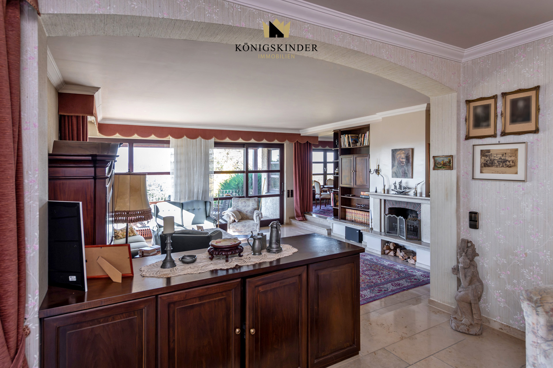 Die Hauptwohnung wird dominiert von einem eleganten, repräsentativen Wohnbereich der in unterschiedliche Wohn-Zonen optisch geteilt ist: ein Kaminbereich um auf dem Sofa in aller Ruhe oder trauter Familienrunde den Sonnenuntergang zu genießen. Dazu ein gemütlicher Erker für Besprechungen, den "five-o'clock-tea", für eine Bibliothek oder vielleicht auch mal ein Hauskonzert, die Kultur- und TV-Ecke - was immer Sie mögen.