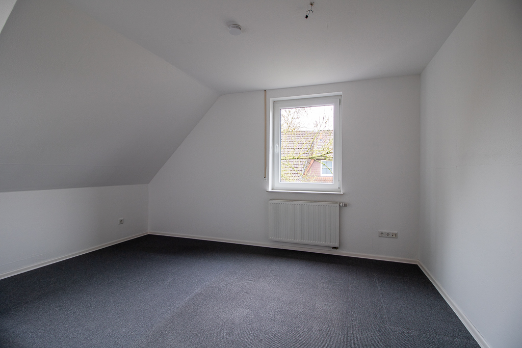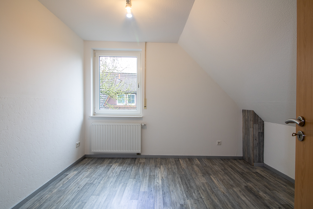 Im Obergeschoss stehen ein großzügiger Flur, vier gut geschnittene Zimmer sowie das Badezimmer zur Verfügung. Die Zimmer bieten vielfältige Nutzungsmöglichkeiten als Schlaf-, Kinder-, Arbeits- oder Gästezimmer. Durch eine Gaube gewinnt das Badezimmer deutlich an Tageslicht und Wohnqualität; sie erweitert den Raum spürbar und unterstreicht dessen Attraktivität. Das Badezimmer ist mit Badewanne, Dusche, Doppelwaschbecken und Fenster ausgestattet. Auch die beiden auf der Rückseite des Hauses gelegenen Zimmer profitieren von dieser Gaube, da sie zusätzliche Wohnfläche und ein angenehmeres Raumgefühl erhalten.