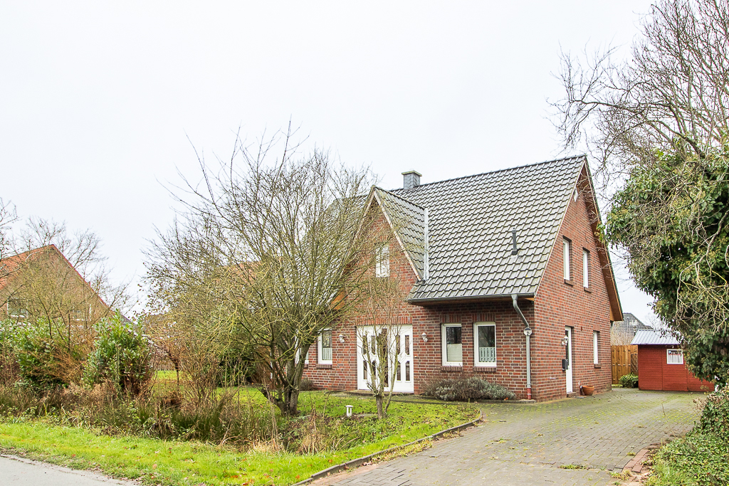 Dieses moderne Einfamilienhaus, das 2004 fertiggestellt und erstmalig bezogen wurde, überzeugt durch eine klare Raumstruktur, großzügige Flächen und eine funktionale Ausstattung, die den Alltag angenehm und komfortabel gestaltet. Ein besonderes architektonisches Merkmal ist der Friesengiebel, der dem Haus eine eigenständige Note verleiht und es optisch hervorhebt.