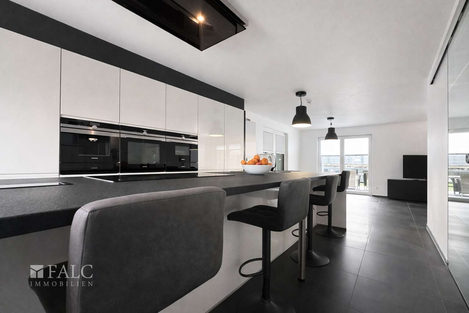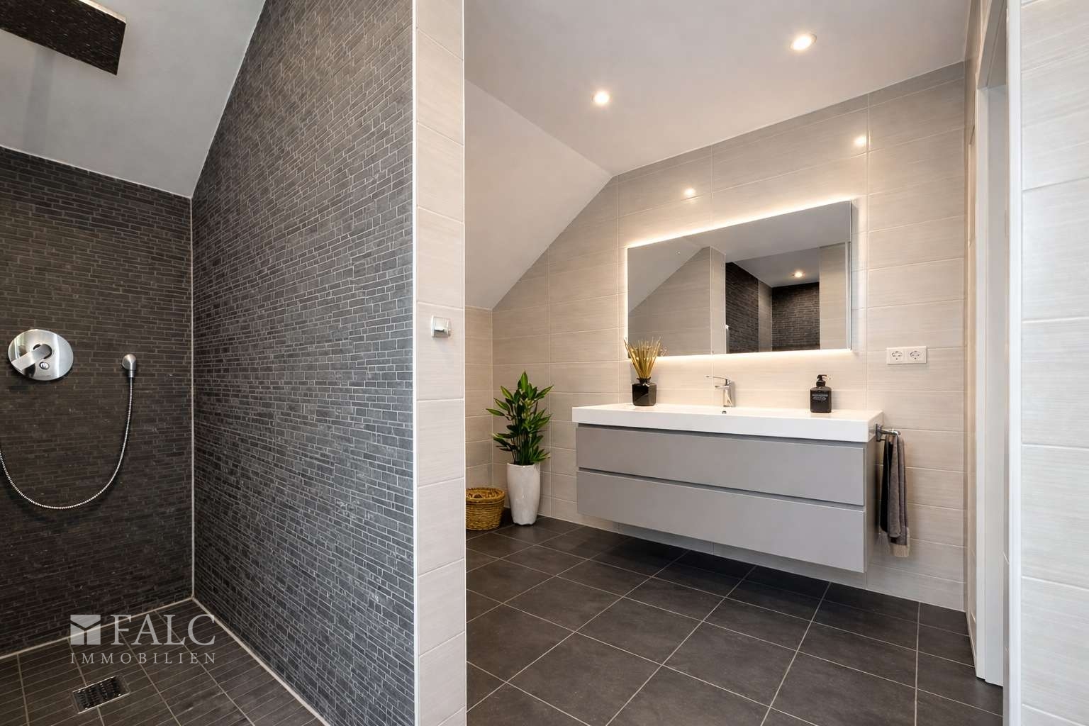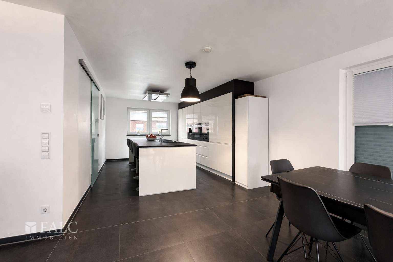 Beim Betreten des Hauses eröffnet sich ein helles und einladendes Raumgefühl. Das Erdgeschoss präsentiert sich mit einem großzügigen, offen gestalteten Wohn-, Ess- und Küchenbereich, der den Mittelpunkt des Hauses bildet. Hier entstehen fließende Übergänge zwischen Kochen, Essen und Wohnen – ideal für das tägliche Familienleben ebenso wie für gesellige Abende mit Gästen. Ein besonderes Highlight ist die stilvolle Einbauküche mit zentraler Kochinsel und integrierten Sitzmöglichkeiten. Sie verbindet Funktionalität mit modernem Design und wird schnell zum kommunikativen Treffpunkt des Hauses. Große, teilweise bodentiefe Fenster sorgen für viel Tageslicht und schaffen eine angenehme Wohnatmosphäre. Gleichzeitig öffnen sie den Blick in den Garten und ermöglichen einen direkten Zugang zur rückwärtig gelegenen Terrasse – ein idealer Ort für entspannte Stunden im Freien. Das Obergeschoss bietet mehrere gut geschnittene Räume, die flexibel als Schlaf-, Kinder-, Gäste- oder Arbeitszimmer genutzt werden können. Dadurch passt sich das Haus unterschiedlichen Lebenssituationen und Bedürfnissen optimal an. Auch praktisch überzeugt die Immobilie im Alltag: Neben der Garage stehen mehrere Stellplätze direkt vor dem Haus zur Verfügung. Dies sorgt für komfortables Parken ohne Parkplatzsuche und bietet ausreichend Platz für Fahrzeuge der Bewohner sowie für Besucher. Ein weiterer großer Vorteil ist die energieeffiziente Bauweise des Hauses. Sie ermöglicht niedrige Betriebskosten und bietet gleichzeitig eine hohe Zukunftssicherheit – ein wichtiger Faktor in Zeiten steigender Energiekosten. Insgesamt präsentiert sich diese Immobilie als modernes, energieeffizientes und einladendes Zuhause mit großzügigem Wohngefühl, viel Licht und einer harmonischen Verbindung zwischen Innen- und Außenbereich – ein Ort, an dem man sich vom ersten Moment an wohlfühlen kann.