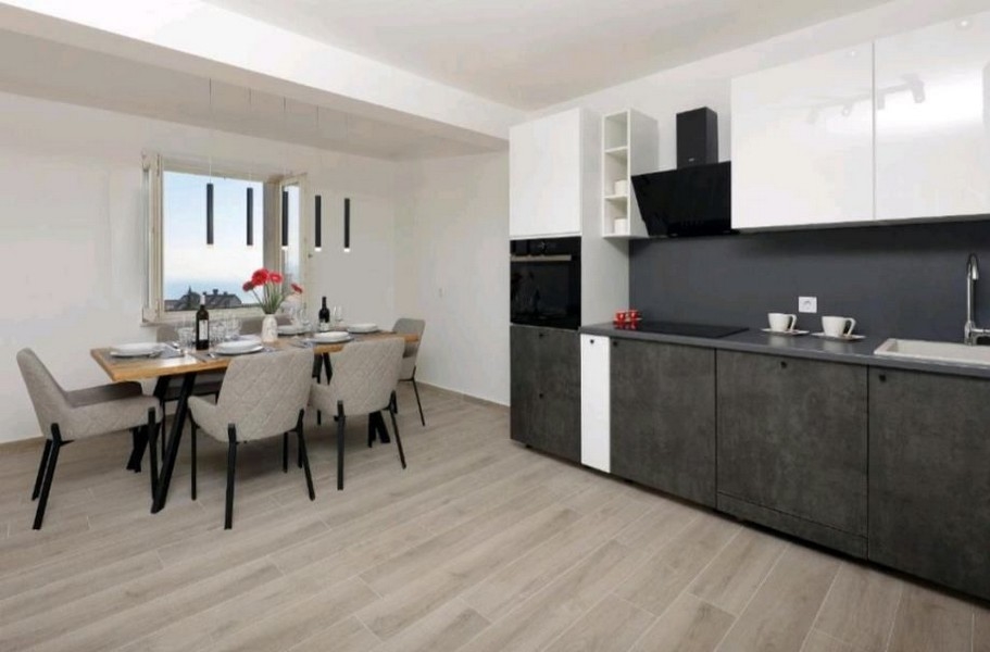 Bei diesem Angebot handelt es sich um eine modern eingerichtete Wohnung mit schönem Meerblick in Pobri, Region Opatija.