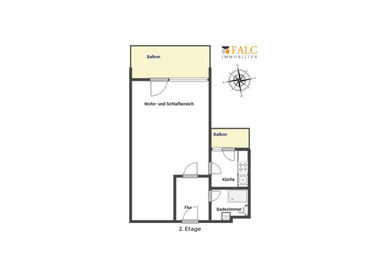 Dieses entzückende Apartment in der 2. Etage steht ab sofort zur Vermietung bereit und bietet auf ca. 50 Quadratmetern alles, was Singles für komfortables Wohnen brauchen. Der großzügige Wohn- und Schlafbereich ist lichtdurchflutet und öffnet sich zu einem großen Balkon, ideal für entspannte Stunden an der frischen Luft. Von der Küche aus gelangen Sie auf einen zweiten, kleinen Balkon – perfekt für einen Kaffee am Morgen oder frische Luft beim Kochen. Im Flur ist genügend Platz für eine Garderobe und kleine Stauraumlösungen.