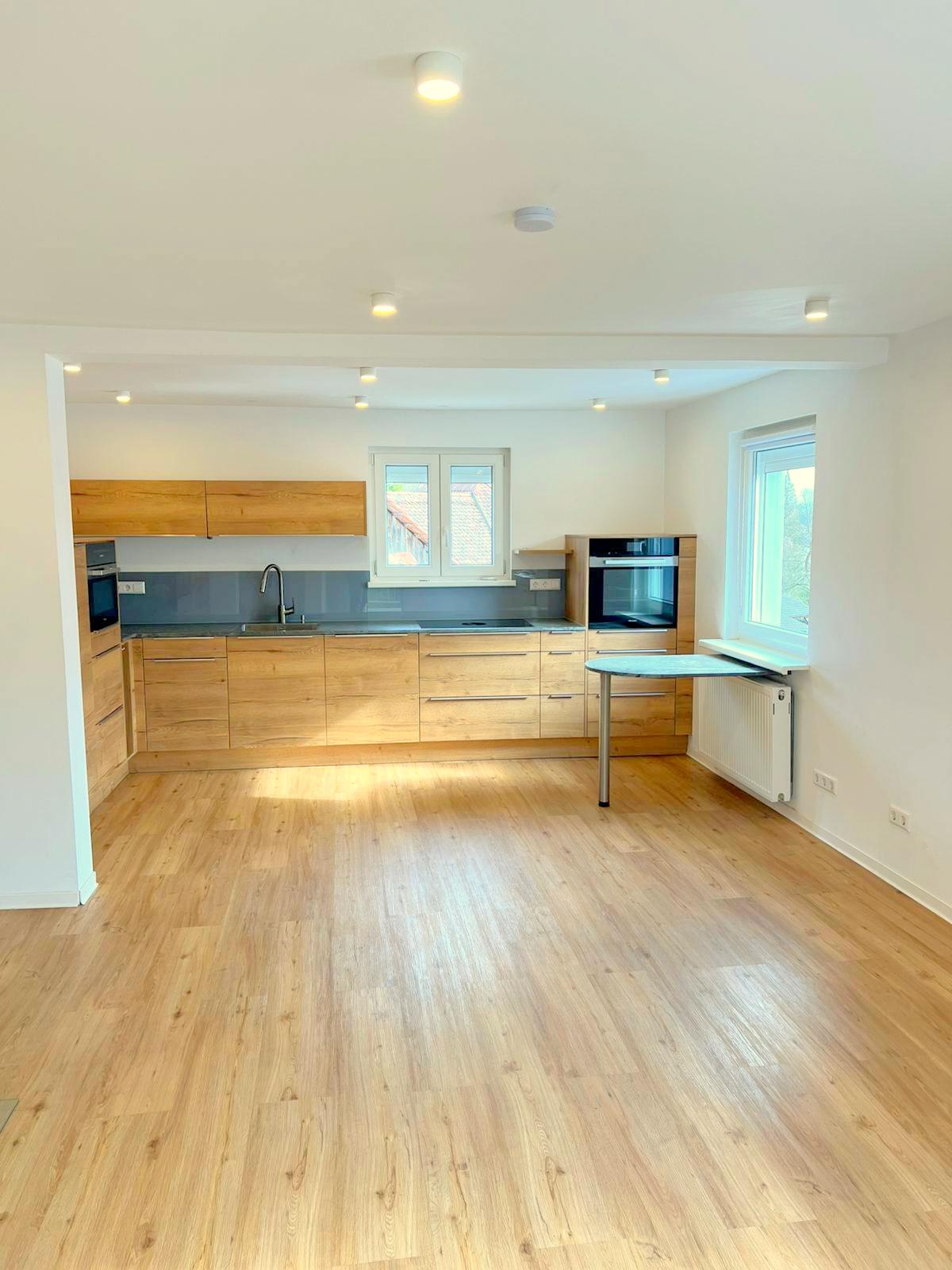 Herzstück der Wohnung ist der helle Wohn- und Essbereich mit offener Küche, der durch seine Großzügigkeit und Offenheit besticht. Die neue, hochwertige Einbauküche fügt sich harmonisch in den Raum ein und lässt keine Wünsche offen.