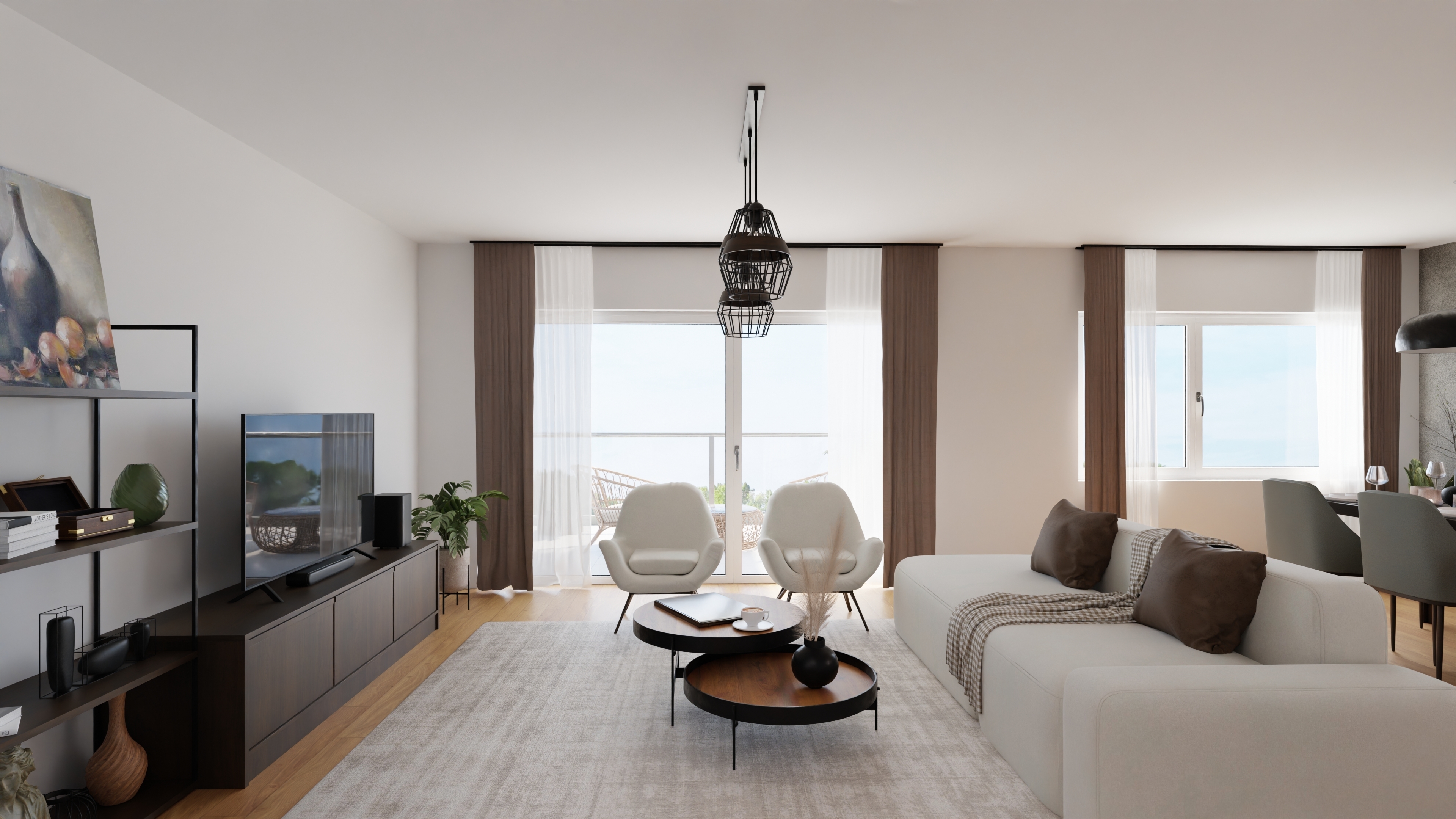 Die Architektur kombiniert zeitlose Ästhetik mit funktionalem Komfort. Drei separate Hauseingänge schaffen eine wohnliche Intimität, die man sonst nur von klassischen Villen kennt. Jede Wohnung – vom kompakten 2-Zimmer-Apartment bis hin zur großzügigen 4-Zimmer-Wohnung – ist Ausdruck anspruchsvoller Planung: