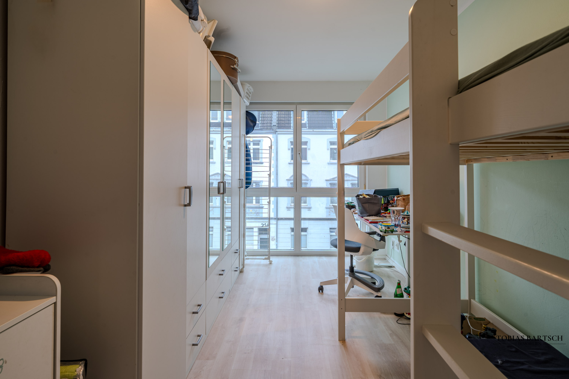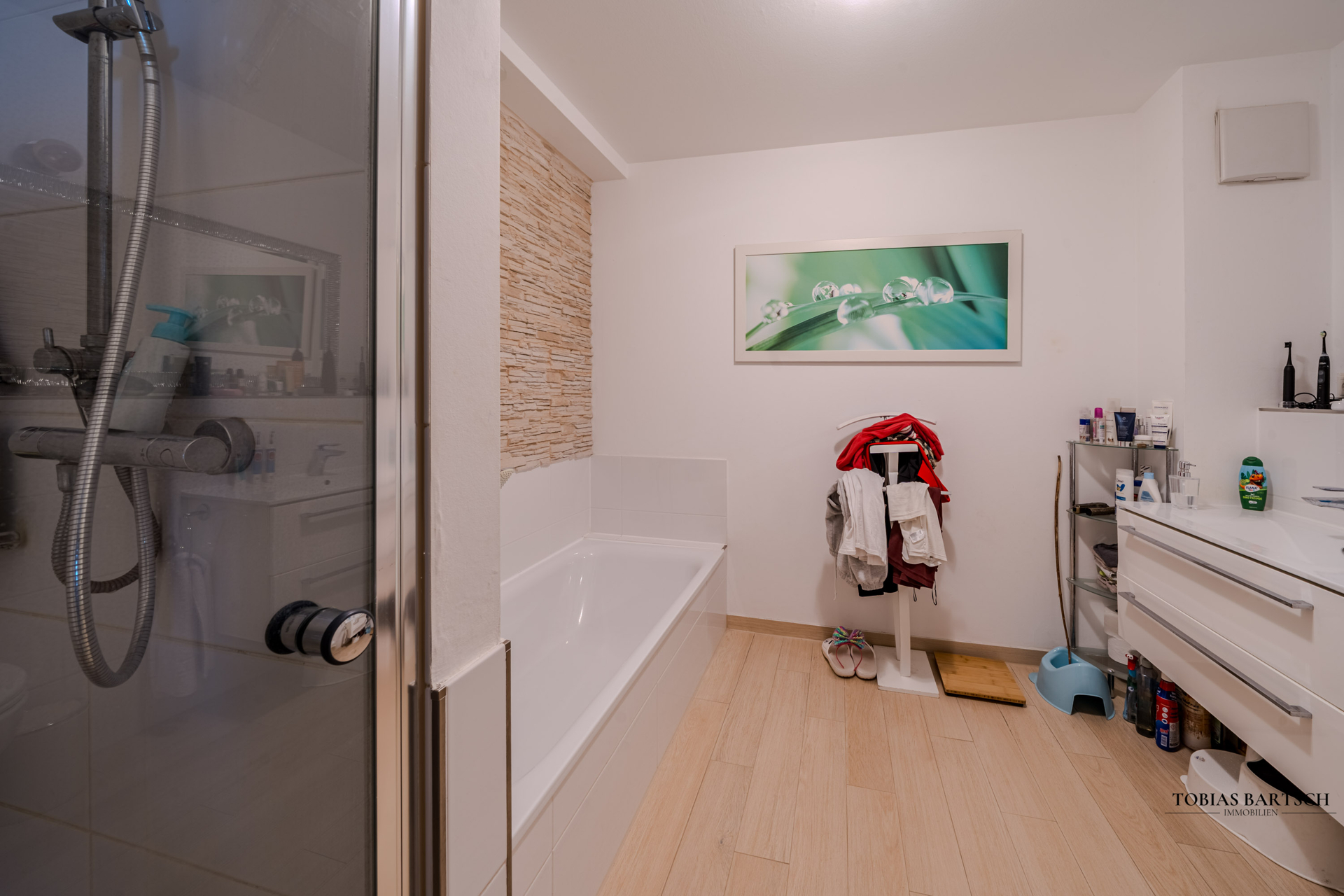 Drei gut geschnittene Schlafzimmer (ca. 13,5 m², 11,5 m² und 10,1 m²) eröffnen flexible Nutzungsmöglichkeiten – ob als Elternschlafzimmer, Kinderzimmer, Gäste- oder Arbeitszimmer. Das großzügige Badezimmer ist sowohl mit einer Dusche als auch mit einer Badewanne ausgestattet und erfüllt damit höchste Ansprüche an Komfort und Funktionalität. Ergänzt wird das Raumangebot durch ein separates Gäste-WC, einen geräumigen Flur sowie einen praktischen Abstellraum, welcher über Einbauregale und einen Waschmaschinenanschluss verfügt.
