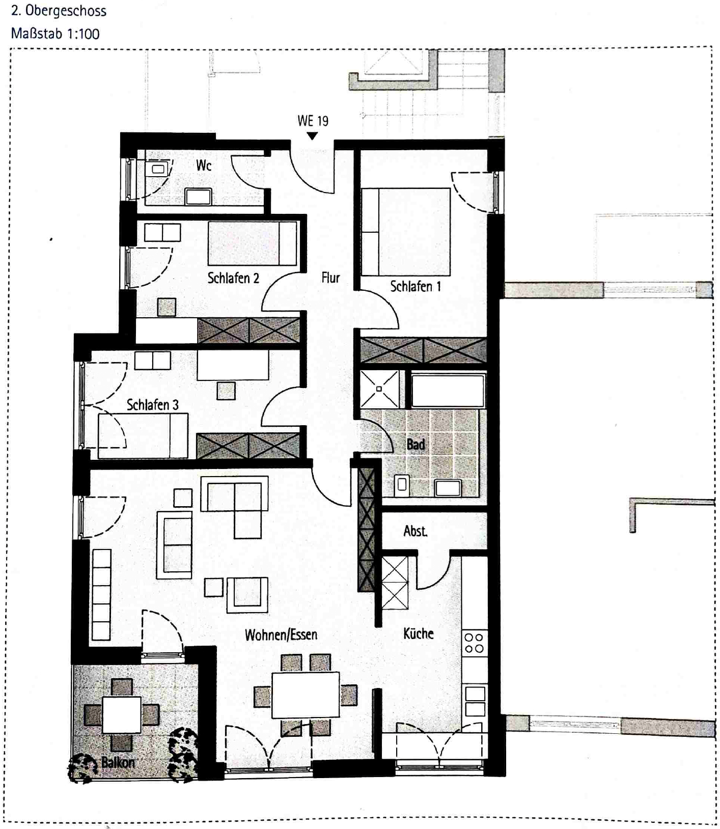 Die im Jahr 2012 in massiver Bauweise errichtete Wohnanlage überzeugt durch ihre zeitgemäße Architektur und eine gehobene Ausstattungsqualität. Die Wohnung selbst befindet sich im 2. Obergeschoss und ist bequem über das Treppenhaus oder den Aufzug erreichbar. Mit einer Wohnfläche von ca. 106 m² und insgesamt vier Zimmern bietet sie ein durchdachtes Raumkonzept sowie ein großzügiges Platzangebot für verschiedene Lebenssituationen.
