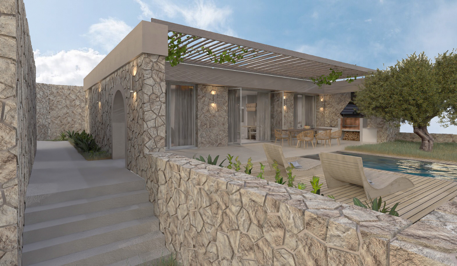 Hochwertige Bauweise und Energieeffizienz: Die Villa zeichnet sich durch eine A+ Energieeffizienz aus und verfügt über ein Heiz- und Kühlsystem auf Basis einer Wärmepumpe, das zu den besten Systemen in Griechenland gehört. Das architektonische Design vereint klare Linien, lokalen kretischen Naturstein und moderne Innenarchitektur. Das Haus wurde nach traditioneller Steinbauweise mit 50 cm dicken Steinwänden und Wärmedämmung errichtet.