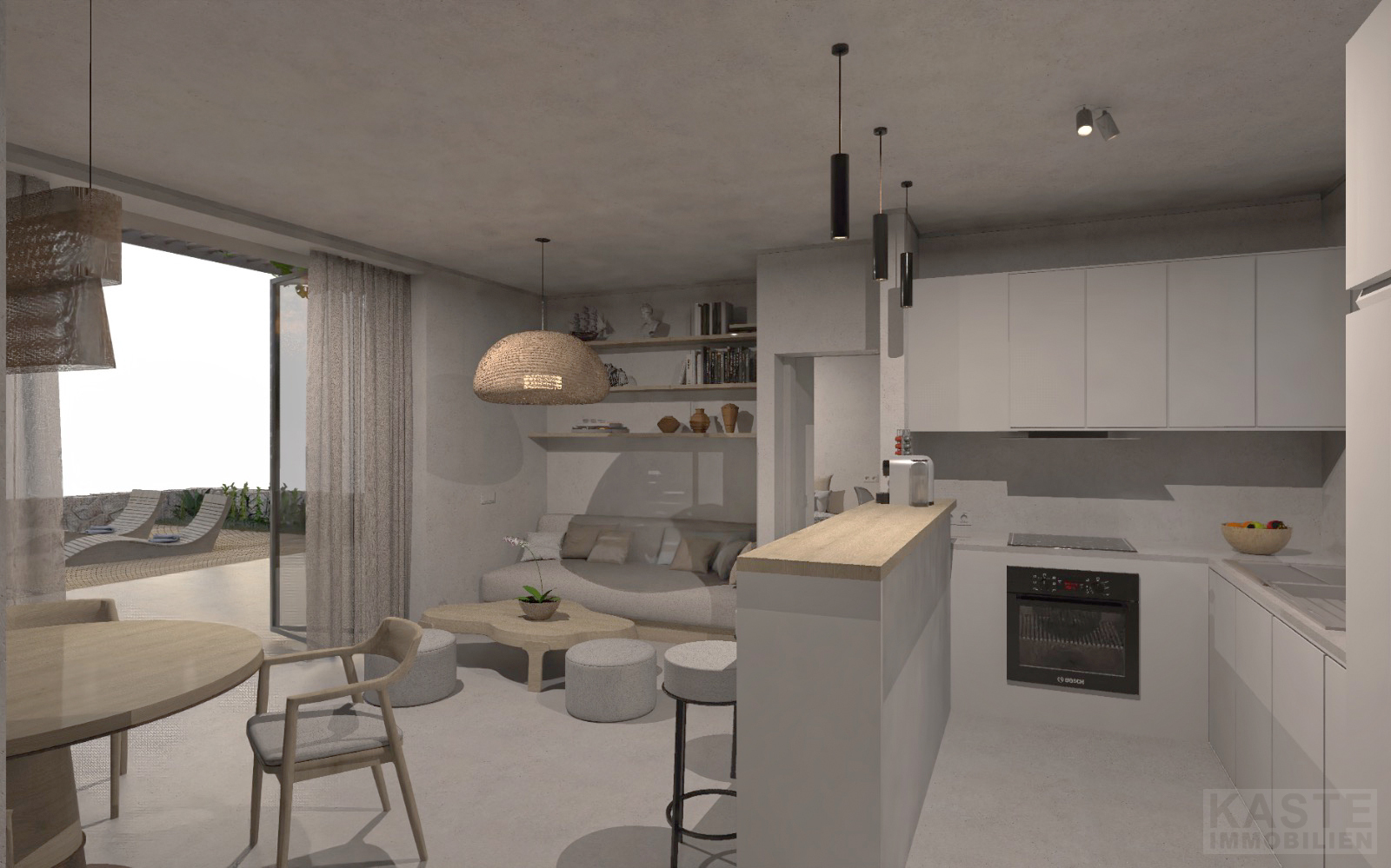Panoramablick auf das türkisblaue Mittelmeer: Genießen Sie dank bodentiefer Panoramafenster und einer großzügigen Terrasse einen freien, atemberaubenden Blick über Ihre Olivenhaine hinweg auf das türkisblaue Mittelmeer. Diese atemberaubende Aussicht wird Sie Tag für Tag begeistern.