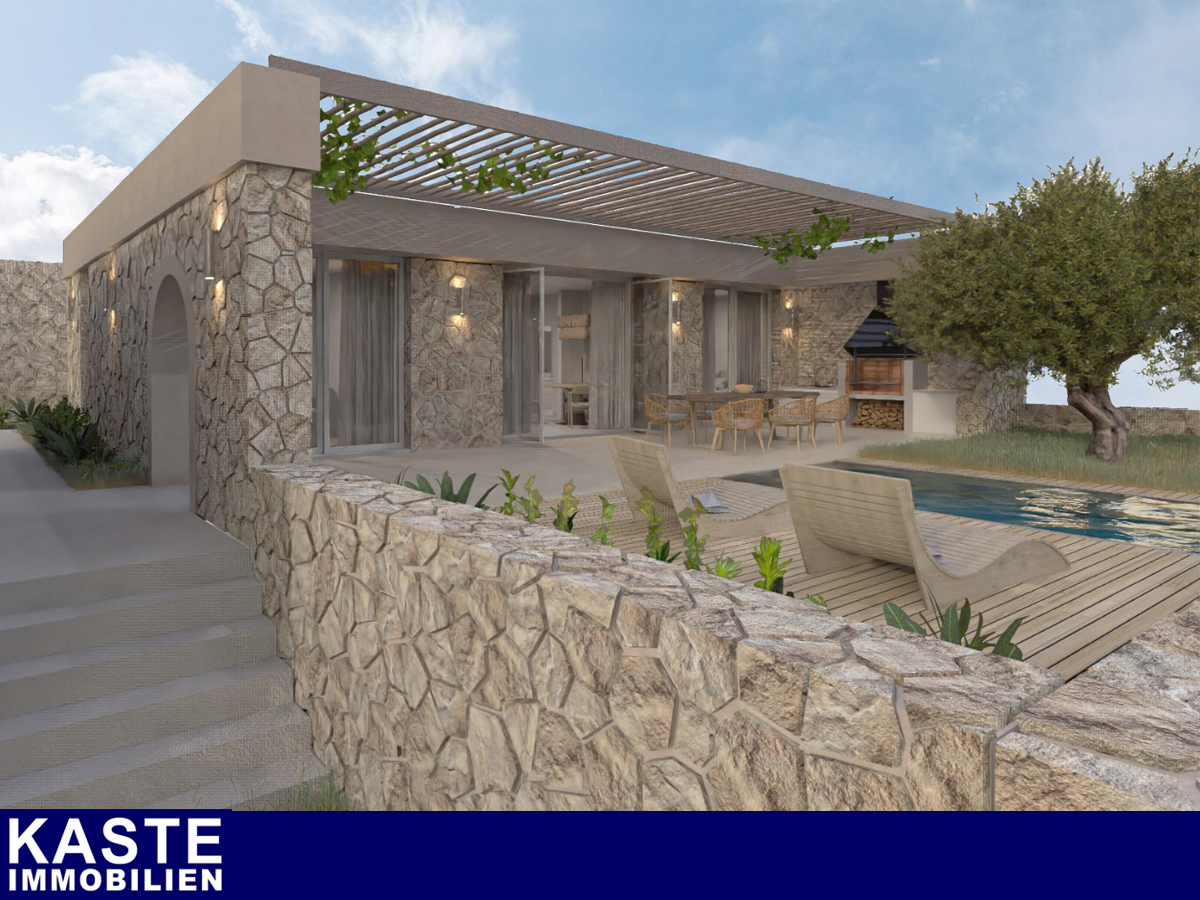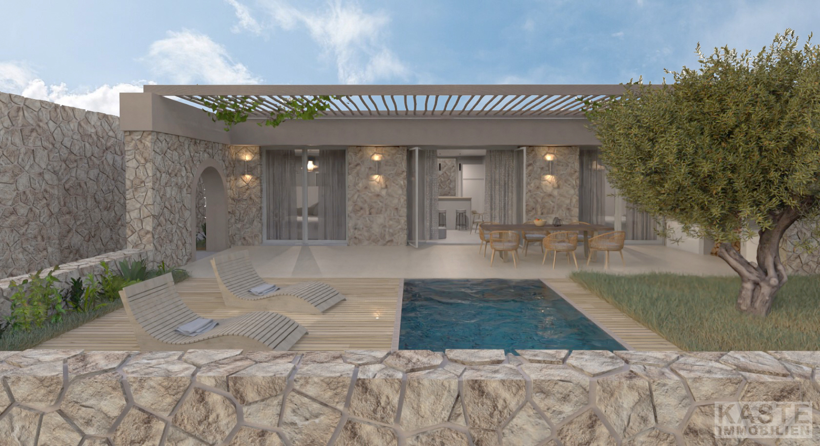 Hochwertige Bauweise und Energieeffizienz: Die Villa zeichnet sich durch eine A+ Energieeffizienz aus und verfügt über ein Heiz- und Kühlsystem auf Basis einer Wärmepumpe, das zu den besten Systemen in Griechenland gehört. Das architektonische Design vereint klare Linien, lokalen kretischen Naturstein und moderne Innenarchitektur. Das Haus wurde nach traditioneller Steinbauweise mit 50 cm dicken Steinwänden und Wärmedämmung geplant.