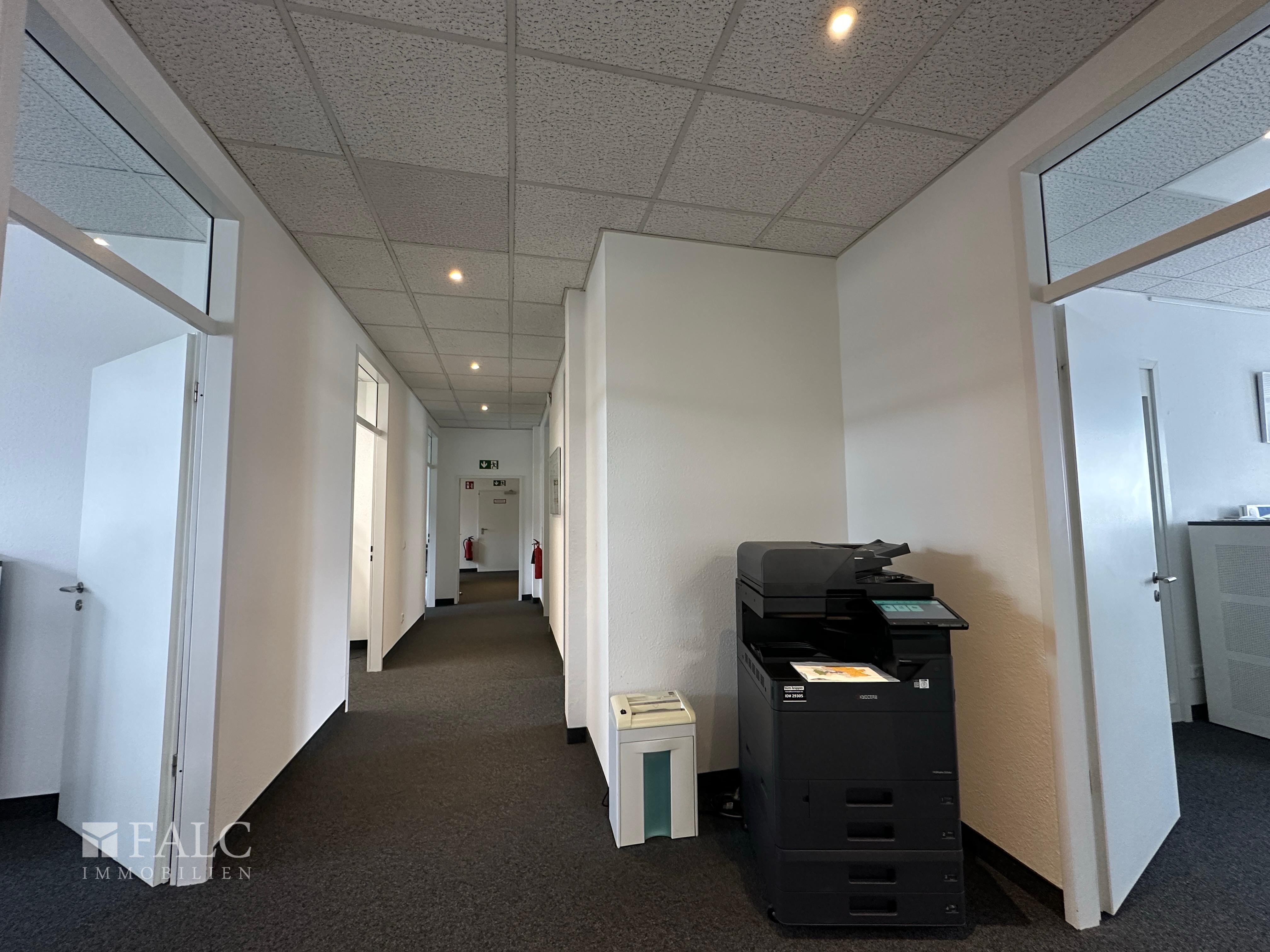 Das Bürogebäude liegt verkehrsgünstig an der A3, A46 und A59. Zur Innenstadt sind es nur wenige Gehminuten. Auch mit Bus (O3) und Bahn (S1) sind Sie schnell erreichbar.