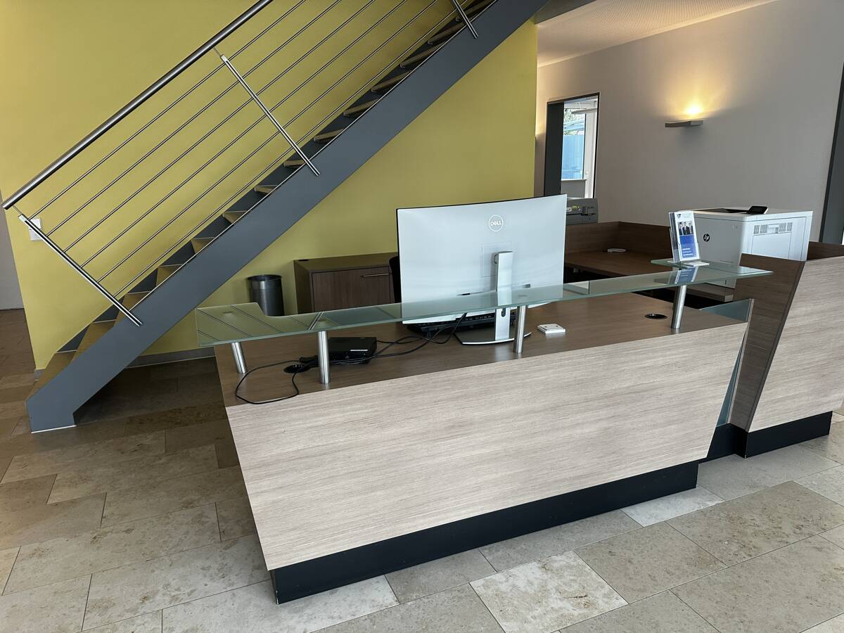 Diese exklusive Büroimmobilie in Warendorf vereint eine zentrumsnahe Lage mit einem erstklassigen Arbeitsumfeld, das durch professionellen Stil und eine gepflegte Atmosphäre besticht. Beim Betreten beeindruckt ein großzügiger Eingangsbereich mit stilvollem Empfangstresen, der die hochwertige Qualität des Gebäudes unterstreicht und bei Kunden sowie Geschäftspartnern einen bleibenden ersten Eindruck hinterlässt.
