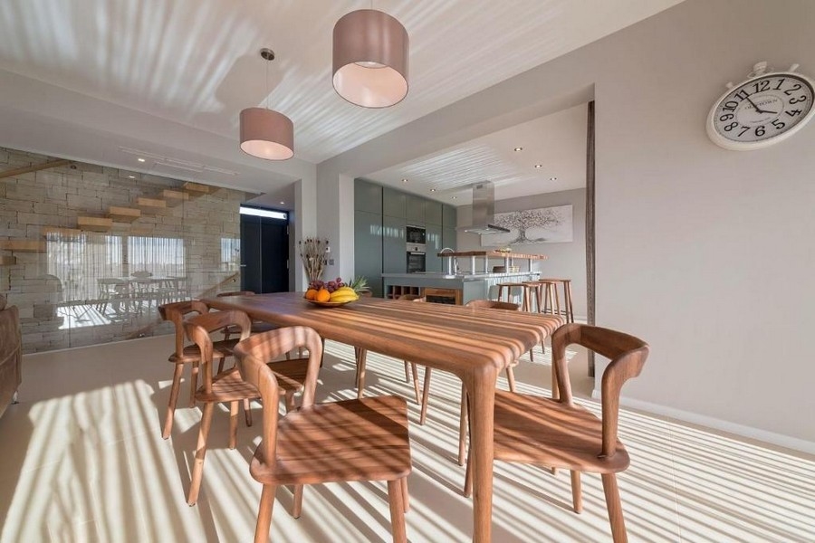 Von der geräumigen Dachterrasse - mit Whirlpool - besteht ein schöner Blick auf die Umgebung und das Meer. Die Villa ist hochwertig eingerichtet. Im Außenbereich gibt es einen Swimmingpool mit Terrasse und einen Barbecue Grill sowie zwei überdachte Terrassen.