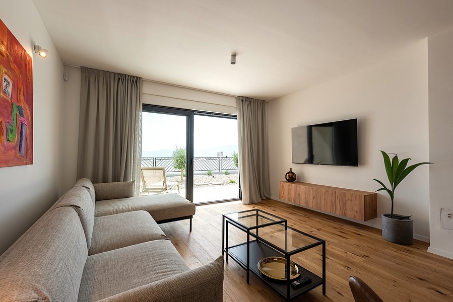 Der Außenbereich ist ein Rückzugsort mit beheiztem Pool, einer Sonnenterrasse und einer überdachten Terrasse mit beeindruckendem Panorama-Meerblick. Fußbodenheizung sorgt für wohlige Wärme an kühleren Tagen, während Klimaanlagen für angenehme Temperaturen im Sommer garantieren.