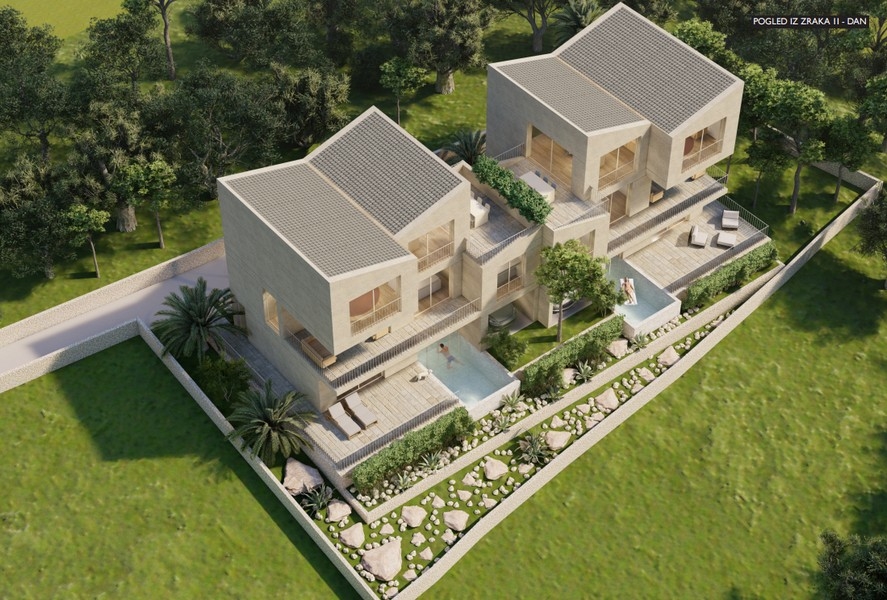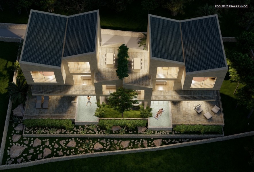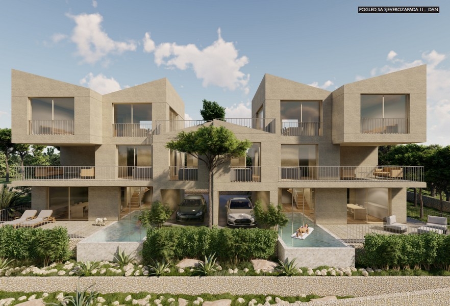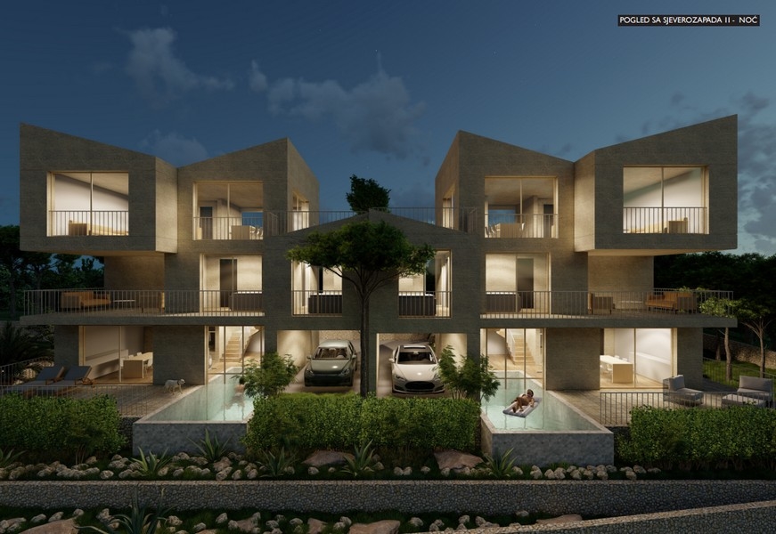 Das Erdgeschoss (68,88 m²) wurde als komfortabler Erholungsbereich gestaltet – mit Pool, Sauna, Dusche, Toilette und der Möglichkeit zum Einbau einer Sommerküche. Von hier aus gelangt man direkt auf die großzügige Terrasse mit schönem Meerblick. In der ersten Etage (54,09 m²) befinden sich drei Schlafzimmer, zwei Bäder sowie ein Balkon und eine Terrasse mit insgesamt 25,11 m². Die oberste Etage (61,41 m²) beherbergt ein offen gestaltetes Wohnkonzept mit Küche und Essbereich, ein Gäste-WC sowie eine weitere große Terrasse mit herrlichem Panorama.