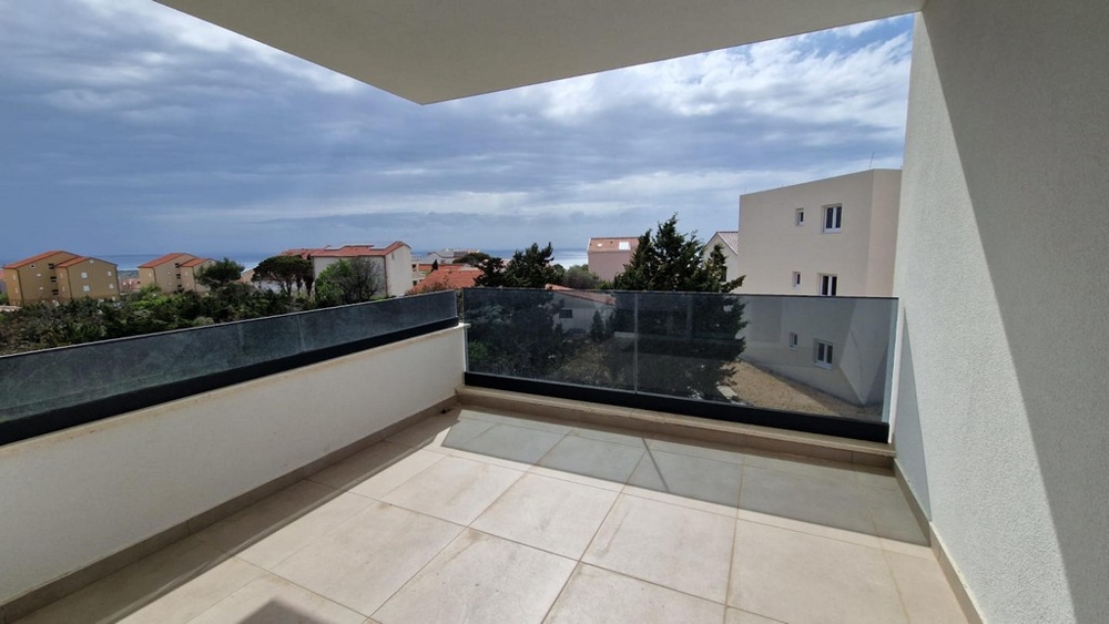 Zum Verkauf stehen diese beiden modernen Doppelhaushälften mit Swimmingpool und Meerblick in Novalja auf der Insel Pag.