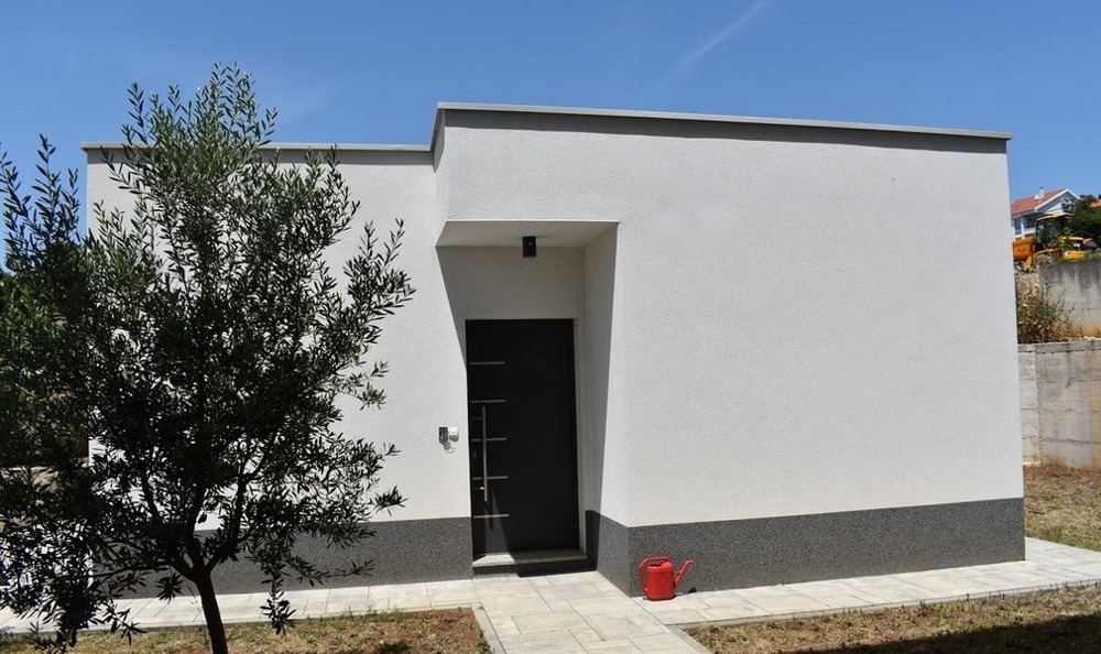 Bei diesem Angebot handelt es sich um eine moderne Erdgeschosswohnung im Neubau (2021 / 2022) plus Nebengebäude und einer großen Garage in Kostrena, Rijeka.