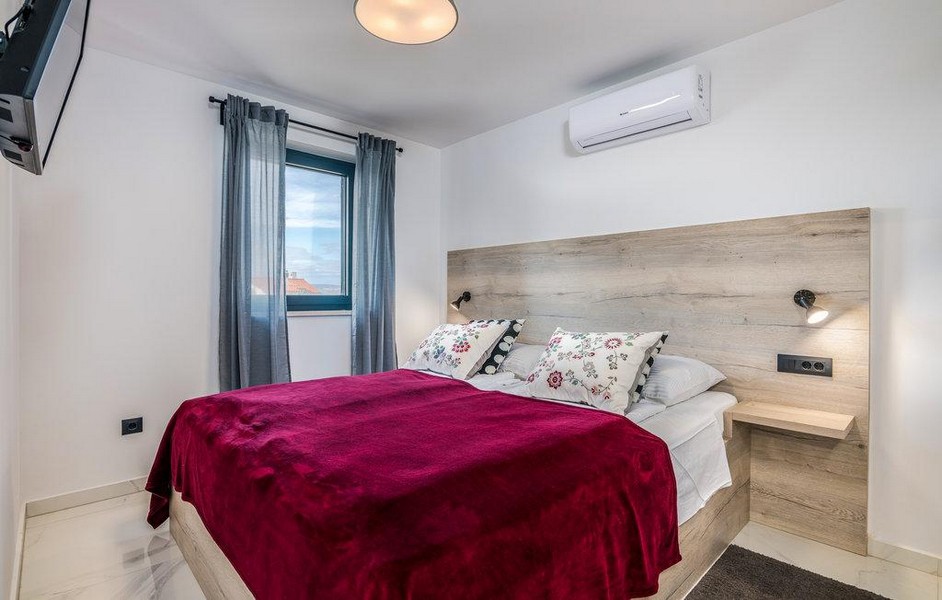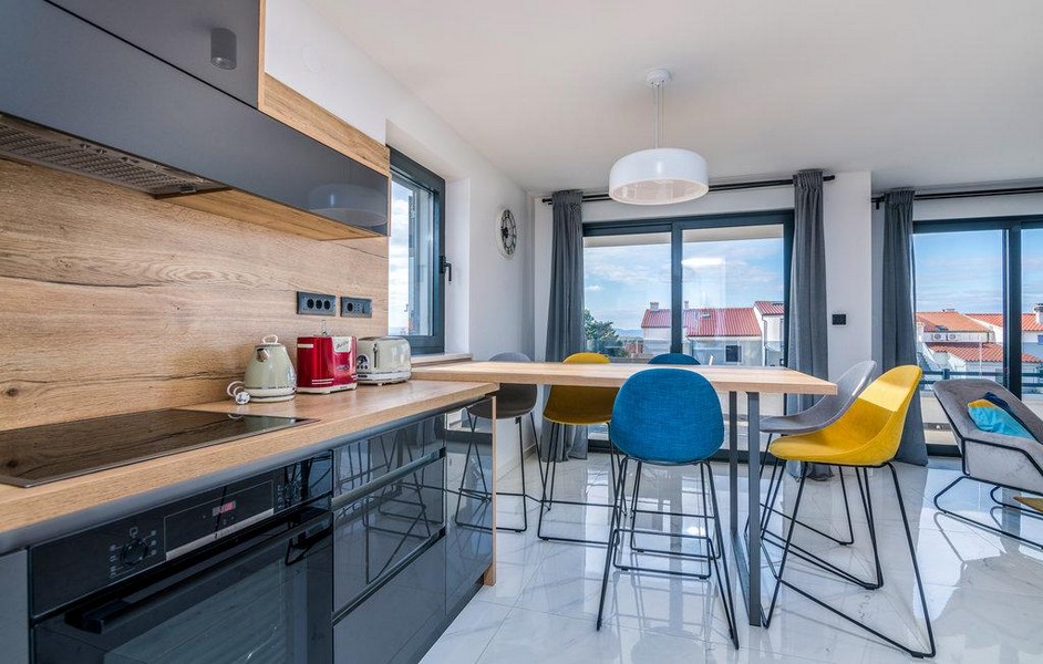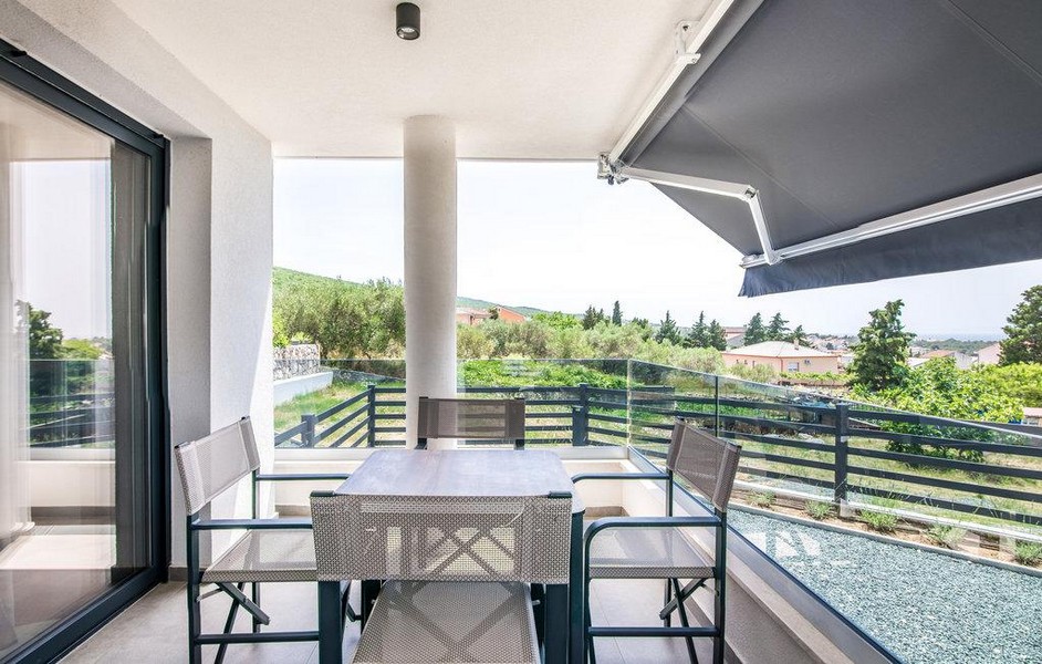 Zum Verkauf steht ein modernes Apartment im Erdgeschoss mit Meerblick und einem großen Garten in Punat.